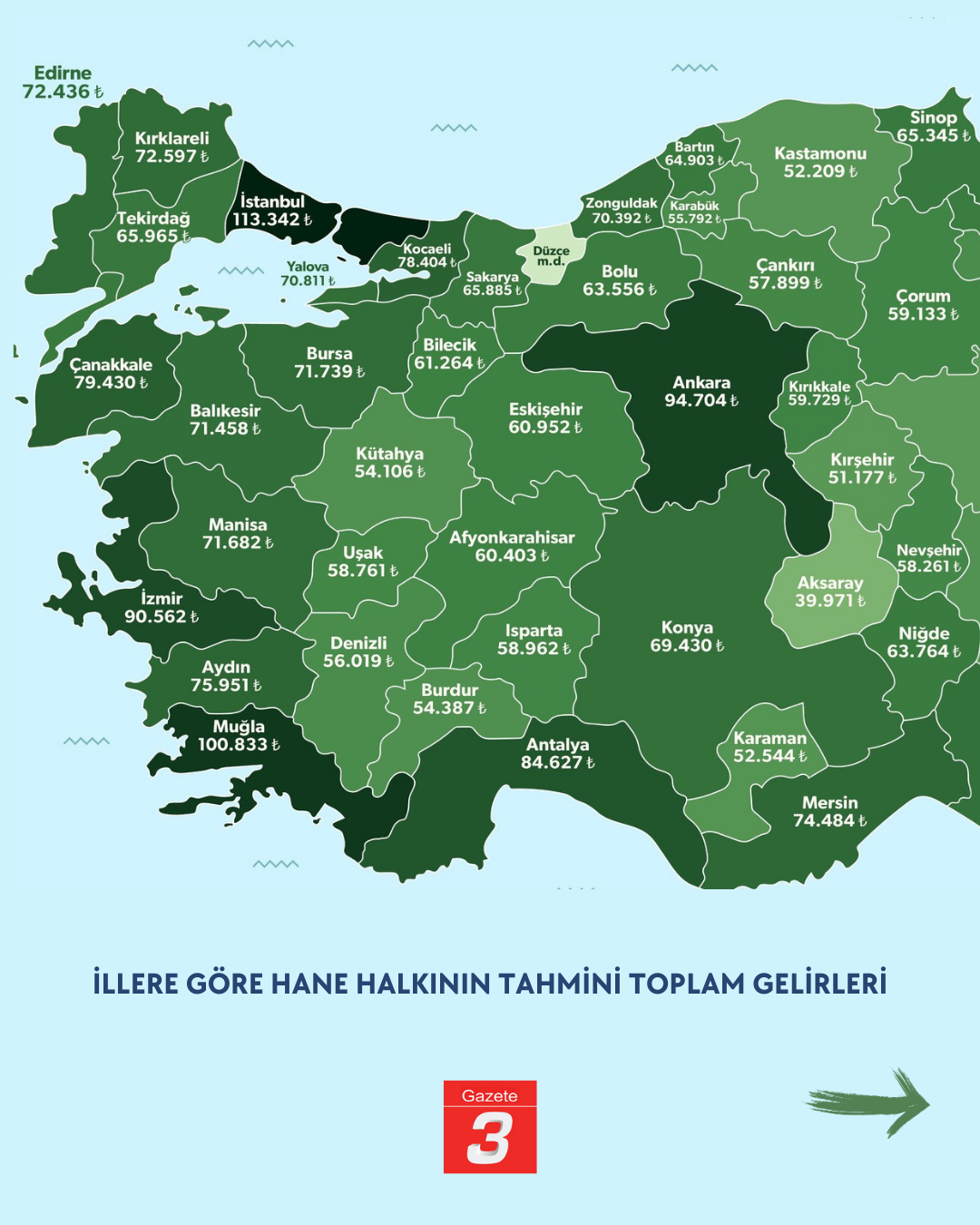 Kira yükünün en ağır olacağı, dolayısıyla en yüksek gelir gereken iller İstanbul, Muğla, Ankara, İzmir ve Antalya olarak sıralandı. Buna karşın barınma maliyetinin gelire oranla daha ulaşılabilir kalacağı iller ise Kilis, Muş, Hakkâri, Aksaray ve Kars oldu.
