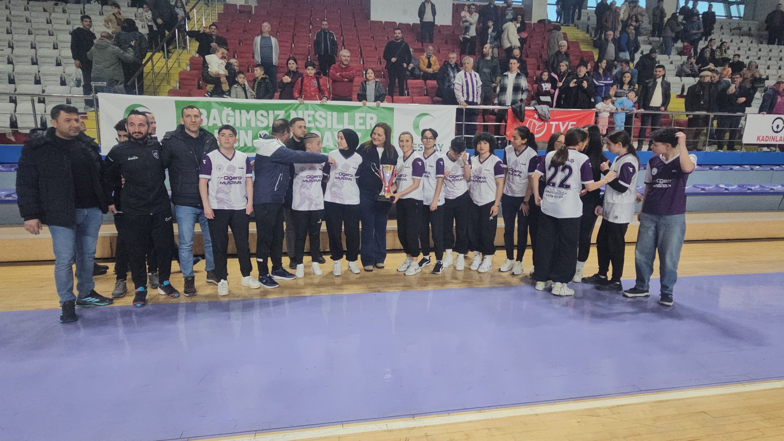 Öte yandan, namağlup olarak 1. Lig’e yükselen ve şampiyonluğunu ilan eden Yüntaş Anadolu Gücü Kadın Futbol Takımı, elde ettiği şampiyonluk kupasını Burcu Köksal’a takdim etti.