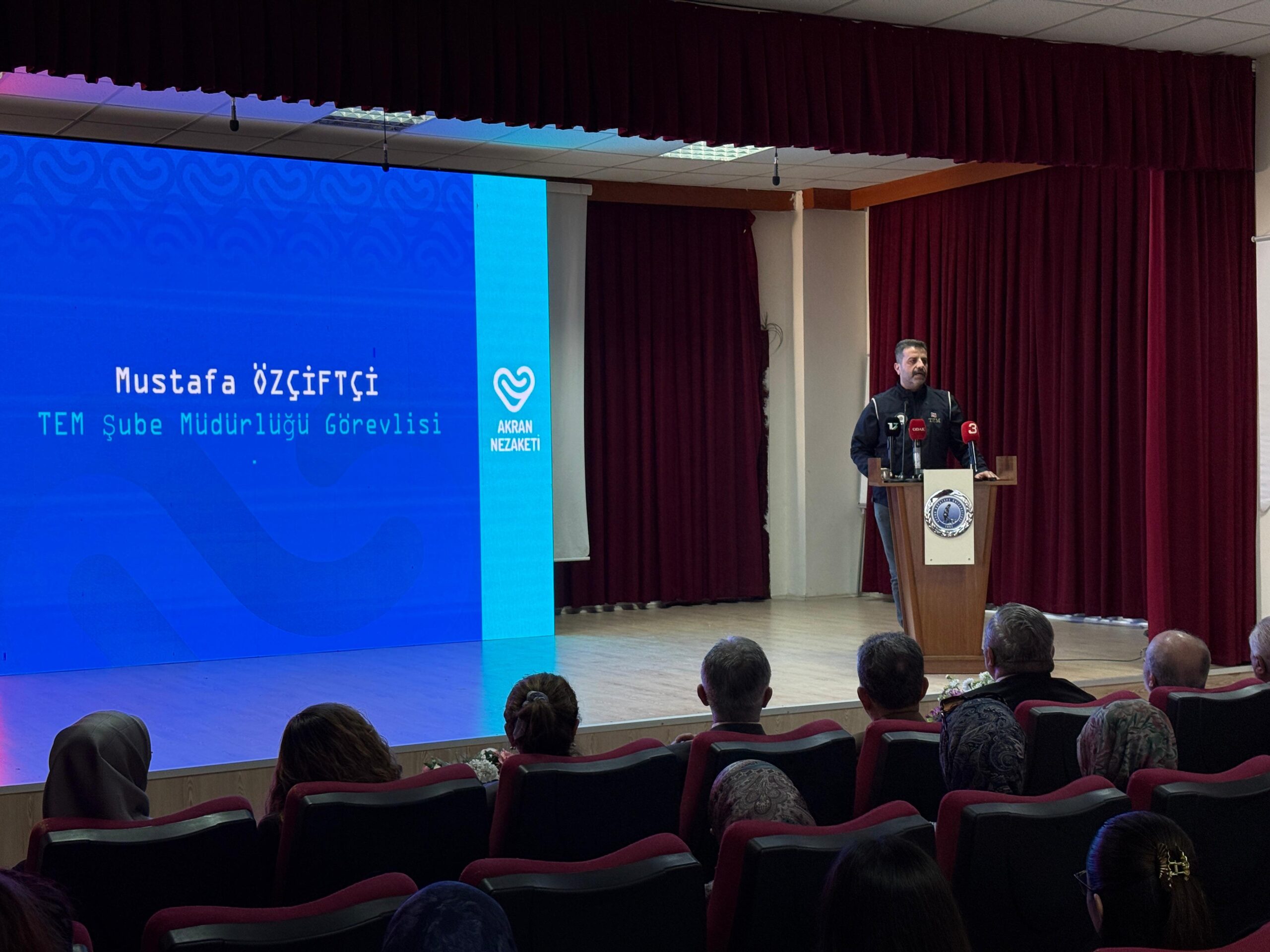 Protokol konuşmalarının ardından sahne alan TEM Şube Müdürlüğü görevlisi Mustafa Özçiftçi, İl Emniyet Müdürlüğü tarafından yürütülen “Gençlik Sizin Eseriniz” projesi kapsamında kapsamlı bir sunum gerçekleştirdi. Sunumda, gençlerin geleceğe daha güvenli ve donanımlı hazırlanmaları noktasında yürütülen çalışmalar aktarıldı.>>Şerafettin KAZAK