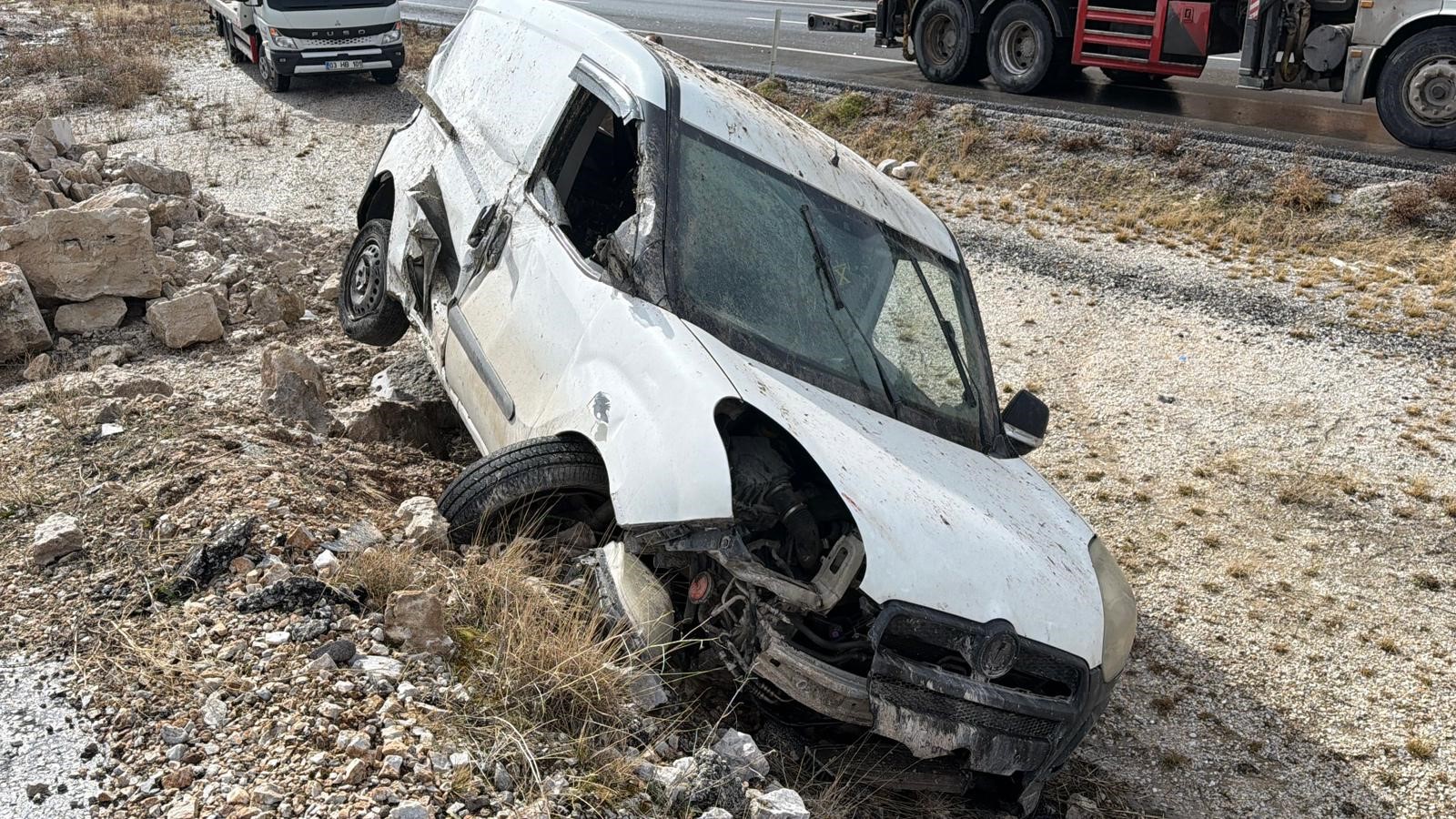 Afyonkarahisar’da yol kenarındaki kayalıklara çarparak devrilen hafif ticari araçta 2 kişi yaralandı.