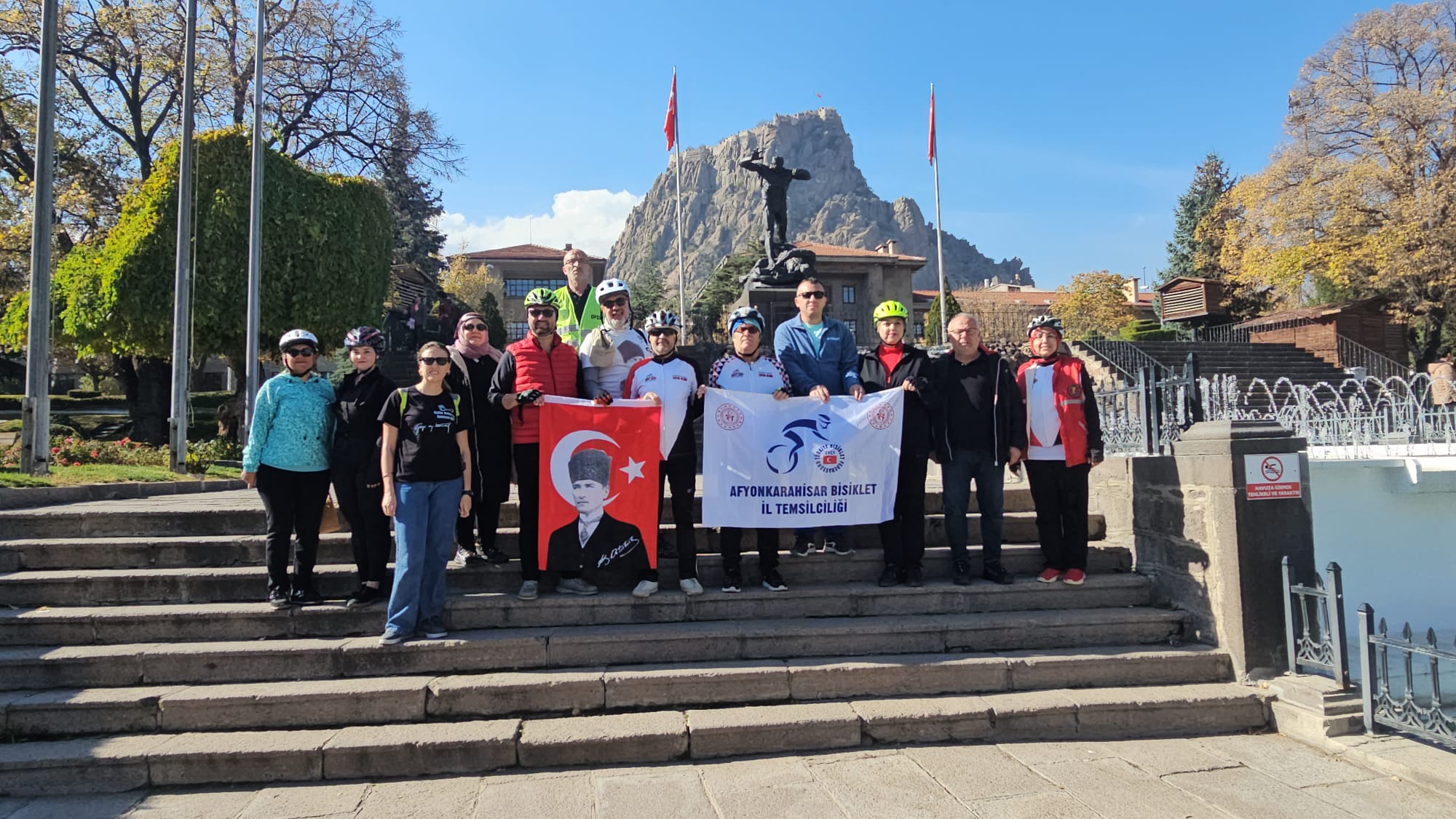 Gençlik ve Spor İl Müdürlüğü ile Türkiye Bisiklet Federasyonu Afyonkarahisar İl Temsilciliği iş birliğinde gerçekleştirilen “Atatürk’ü Anma Bisiklet Turu”na yaklaşık 30 bisikletçi katıldı.