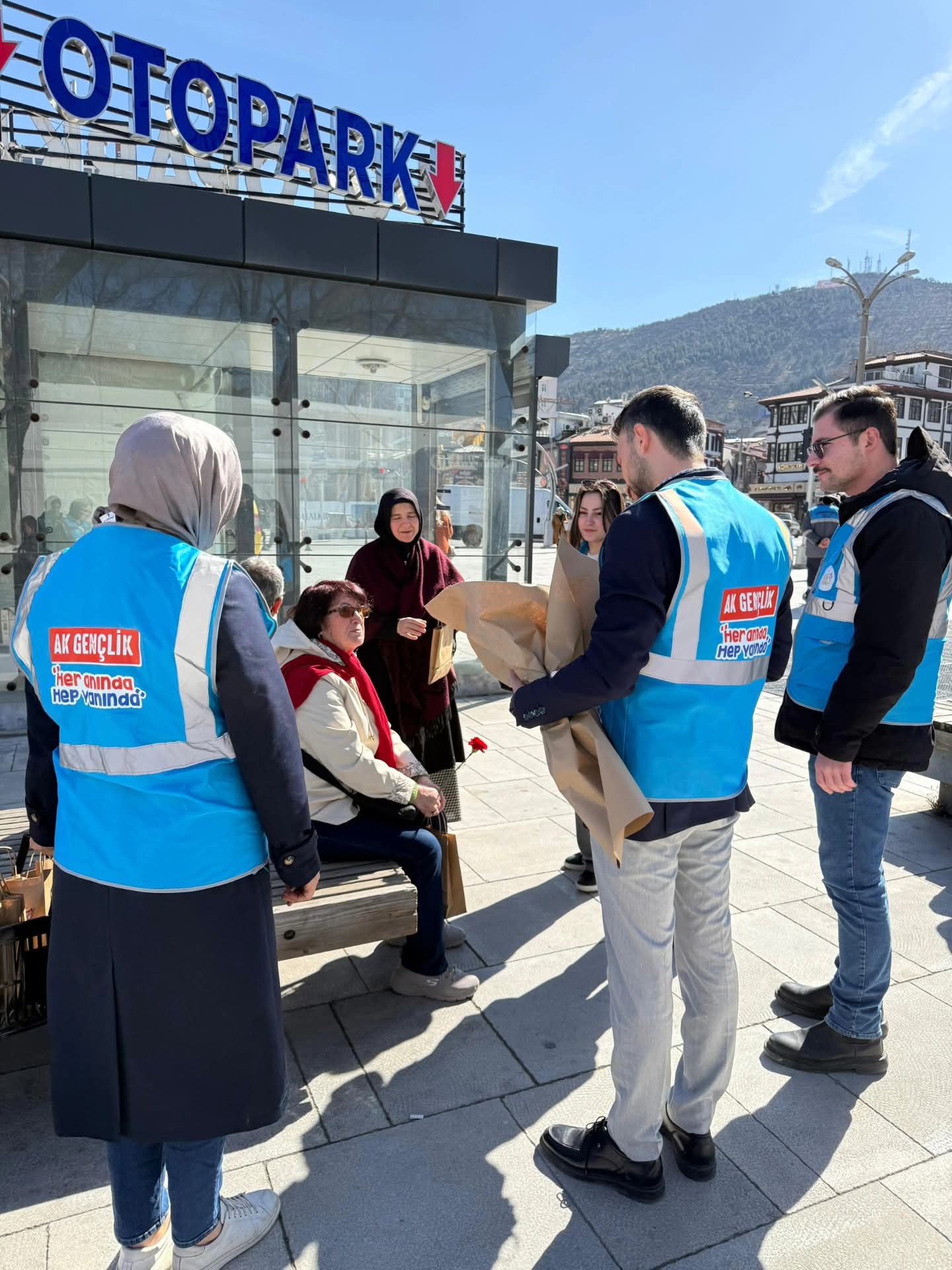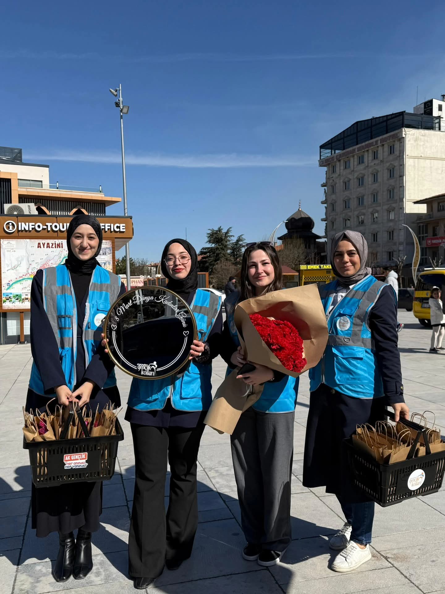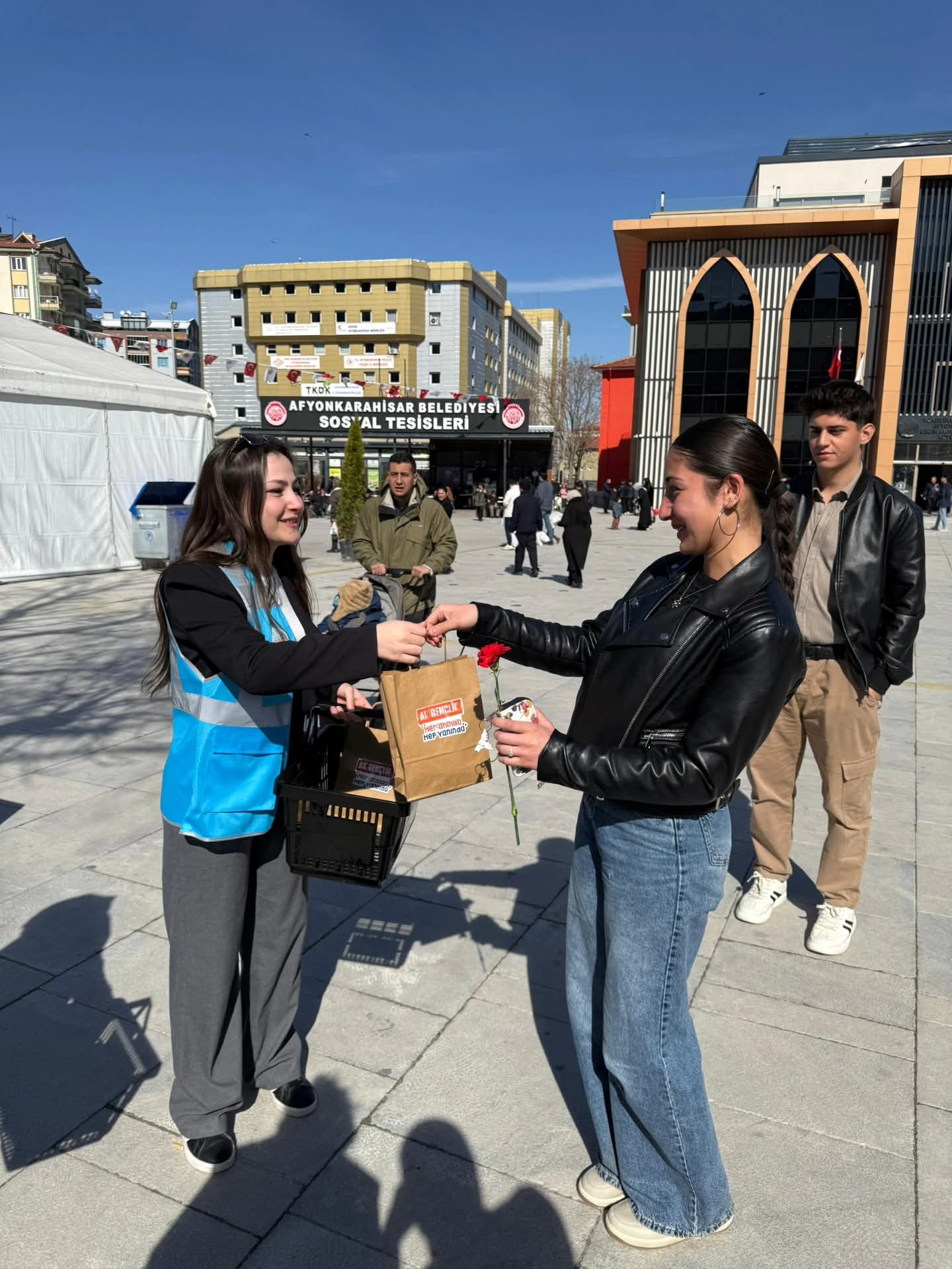 AK Parti Afyonkarahisar İl Gençlik Kolları AR-GE Başkanlığı koordinesinde gerçekleştirilen program kapsamında İl Gençlik Kolları Başkanı Mehmet Emin İntepe ve AK Gençler, Zafer Meydanı’nda kadınlarla bir araya geldi. Meydanda bulunan kadınların 8 Mart Dünya Kadınlar Günü’nü kutlayan gençler, günün anısına çeşitli hediyeler dağıttı. Etkinlikte konuşan İl Gençlik Kolları Başkanı Mehmet Emin İntepe, kadınların toplumun temel taşı olduğunu vurgulayarak, “Kadınlarımızın emeği, fedakârlığı ve sevgisi toplumumuzun en güçlü dayanaklarından biridir. 8 Mart Dünya Kadınlar Günü vesilesiyle tüm kadınlarımızın gününü kutluyor, sağlık, huzur ve mutluluk diliyoruz.” ifadelerini kullandı. Program, vatandaşlarla yapılan sohbetler ve günün anısına verilen hediyelerin ardından sona erdi. >>>Haber Merkezi