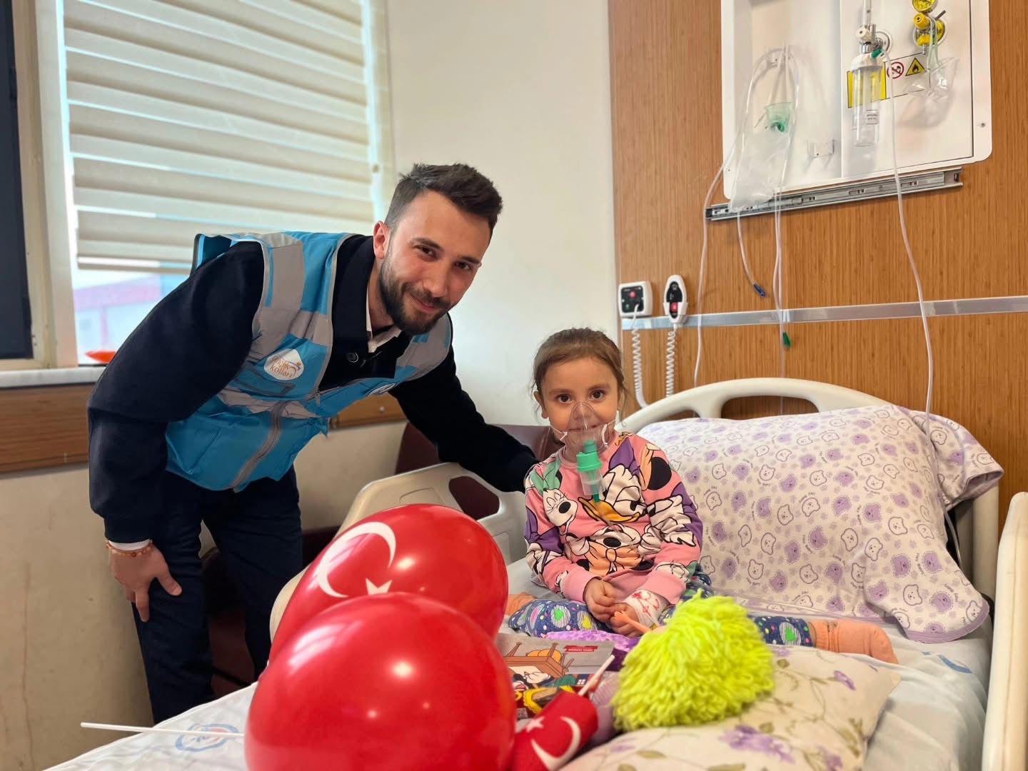 Sağlık Politikaları Başkanlığı öncülüğünde hastanede tedavi gören çocuklarla bir araya gelen gençlik kolları üyeleri, miniklerin bayramını kutlayarak çeşitli hediyeler takdim etti. Çocuklarla yakından ilgilenilen ziyarette duygusal anlar yaşanırken, yüzlerde oluşan tebessüm 23 Nisan’ın anlamını bir kez daha gözler önüne serdi.