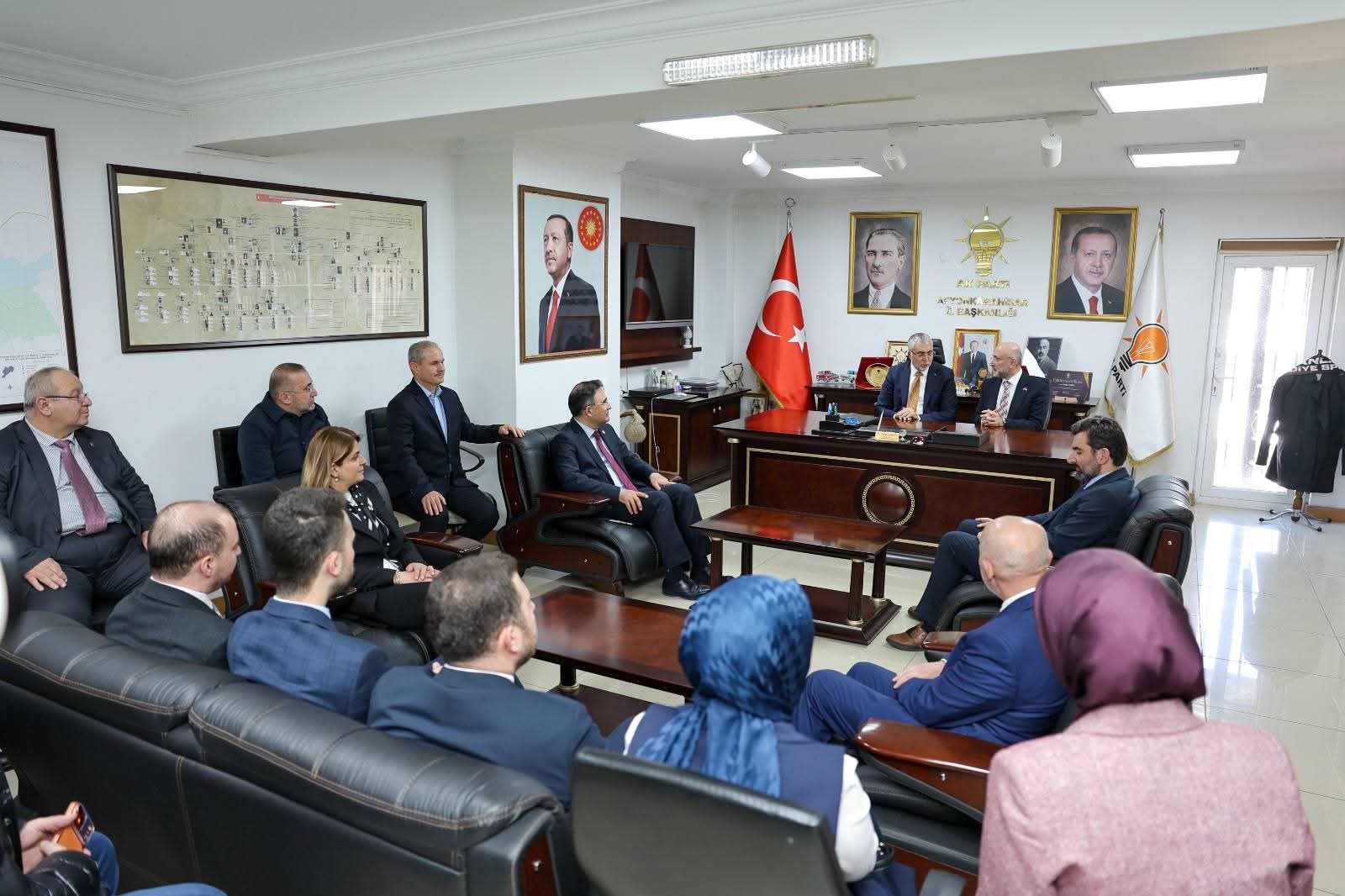 Bakan Işıkhan’ı il başkanlığı binasında AK Parti Afyonkarahisar İl Başkanı Av. Turgay Şahin, AK Parti Afyonkarahisar Milletvekili Dr. Hasan Arslan, il başkan yardımcıları, il gençlik ve kadın kolları başkanları ile teşkilat mensupları karşıladı.