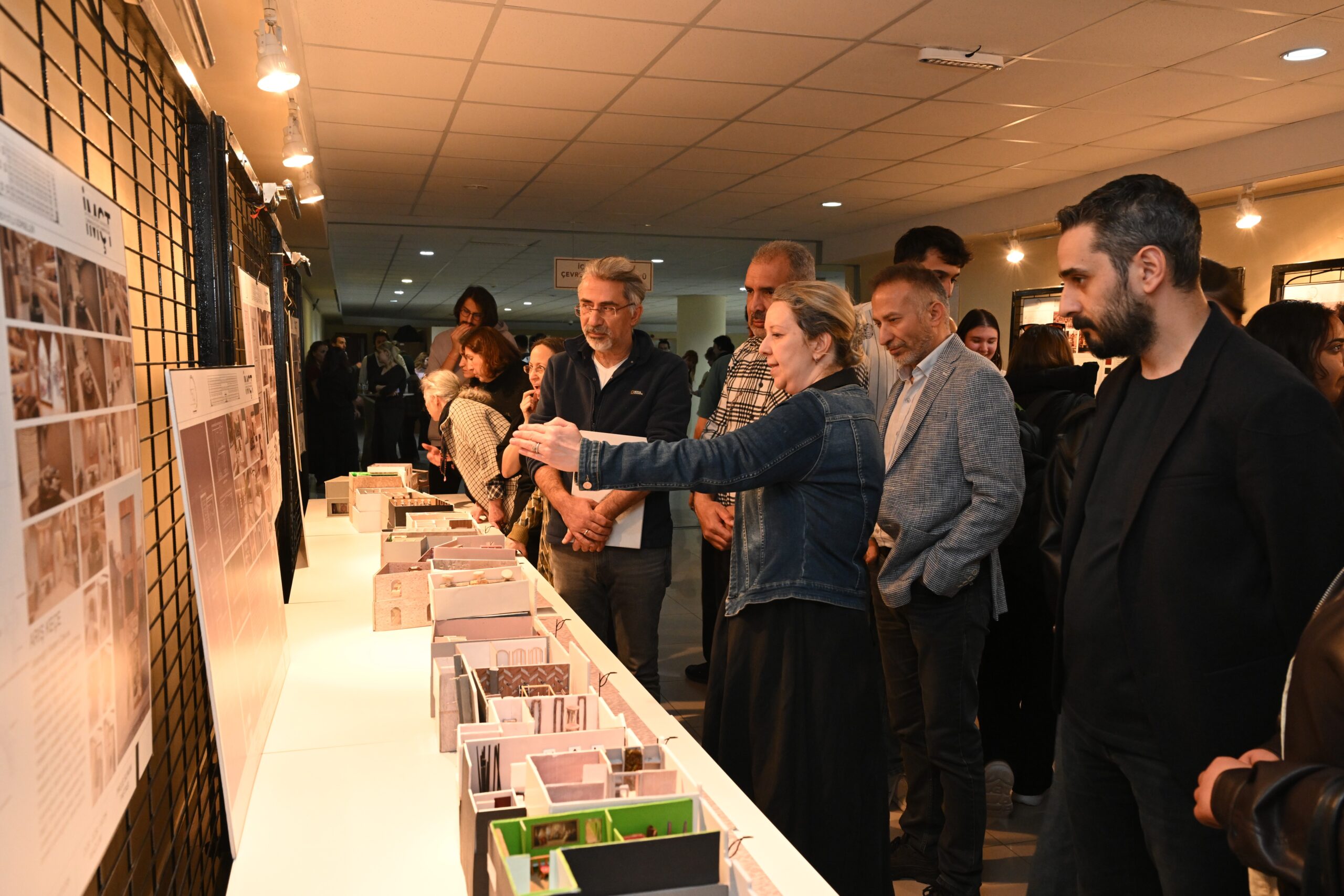 İMÇT Bölümü öğrencilerinin 2025-2026 Akademik Yılı Güz Yarıyılı ders çıktılarından oluşan “Bağlam-1” isimli karma sergi ise, GSF birinci katında açıldı. Sergi açılışında GSF ve İMÇT Bölüm Başkanı Prof. Dr. Şerife Ebru Okuyucu, Dekan Yardımcıları Dr. Öğretim Üyesi Sena Coşkun, Dr. Öğretim Üyesi Fevzi Nuri Kara, Bölüm Başkanları, GSF Danışma Kurulu üyesi Gülenay Yalçınkaya, öğretim elemanları ve öğrenciler yer aldı. Öğrencilerin “Çevre Tasarımı ve Ekoloji Uygulaması-I, Ekolojik Tasarım, Enstalasyon, Görsel İletişim Teknikleri, İç Mekân Restorasyonu, İç Mimaride Teknik Çizim, İç Mimariye Giriş, Meslek Etiği, Mobilya Tarihi, Mobilya Tasarımı, Perspektif, Peyzaj Konstrüksiyonları, Proje-I, Proje-II, Proje-III, Proje IV, Proje V ve Temel Tasarım” derslerinde oluşturdukları ofis mobilyaları, maket, pafta, afiş ve benzeri türdeki çalışmaları, 30 Nisan tarihine kadar sergilenmeye devam edecek. >>>Haber Merkezi