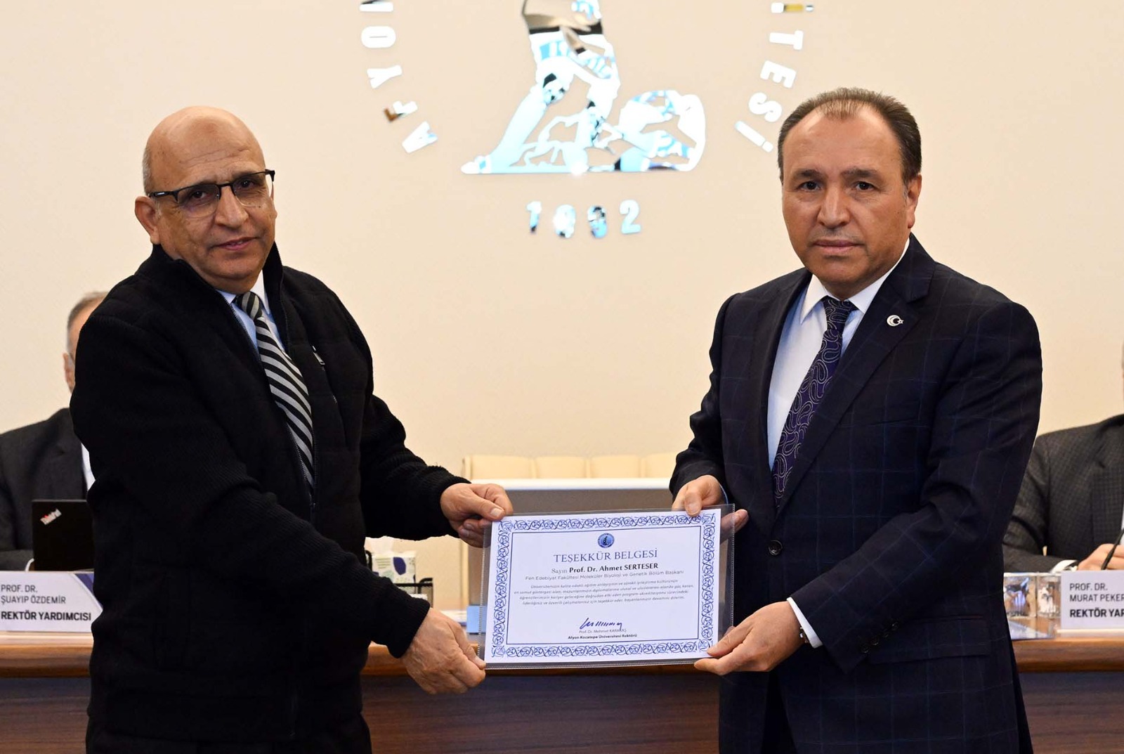 AKÜ’de akreditasyon alan bölümlerin sayısı her geçen gün artıyor. Bu kez de 2025 yılında Fen, Edebiyat, Fen–Edebiyat, Dil ve Tarih–Coğrafya Fakülteleri Öğretim Programları Değerlendirme ve Akreditasyon Derneği (FEDEK) tarafından ilk kez genel değerlendirmeye alınan üç bölüm süreci başarı ile tamamladı. Fen Edebiyat Fakültesi Matematik, Moleküler Biyoloji ve Genetik ile Sosyoloji programları tam akreditasyon aldı. Akreditasyon sürecinde gösterdikleri liderlik ve özverili çalışmalar dolayısıyla, Matematik Bölüm Başkanı Prof. Dr. Mustafa Kemal Yıldız, Moleküler Biyoloji ve Genetik Bölüm Başkanı Prof. Dr. Ahmet Serteser ile Sosyoloji Bölüm Başkanı Prof. Dr. Hüseyin Koçak’a, AKÜ Senatosu huzurunda teşekkür belgesi verildi. Rektör Prof. Dr. Mehmet Karakaş, sürece katkı sunan bölüm başkanlarını tebrik ederek, elde edilen başarının üniversitenin akademik niteliğine önemli katkı sağladığını ifade etti. >>>Mustafa BAYER