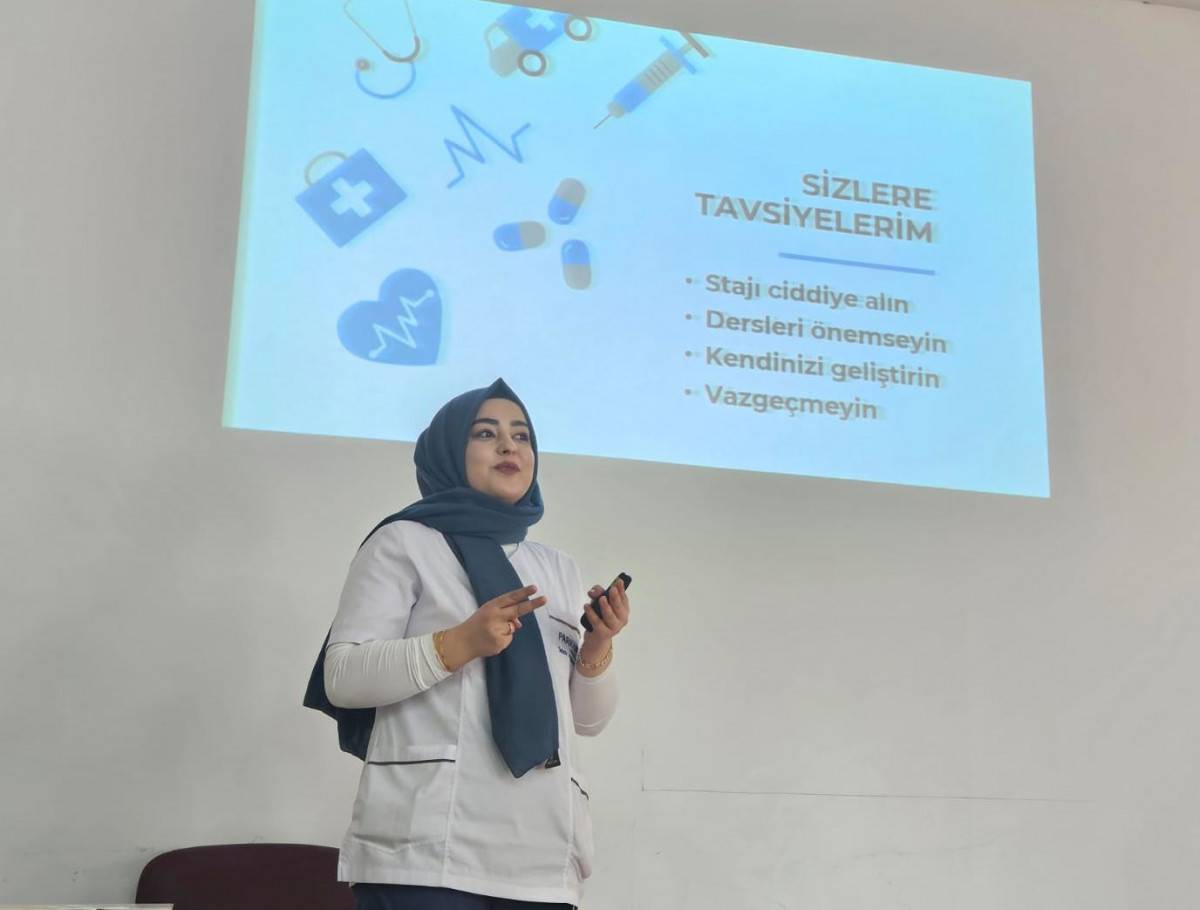 Fizyoterapi Programı mezunlarından Sultan İdem Doğaç, Ortopedik Protez-Ortez Programı mezunlarından Özlem Çolaker ve Tıbbi Dokümantasyon ve Sekreterlik Programı mezunlarından Rabia Çinkaya tarafından yapılan sunumlarda üniversite hayatının kazanımları ve imkanları, meslek hayatındaki sorumluluklar ile iş başvurularında dikkat edilmesi gereken hususlar üzerinde durularak öğrencilere tavsiyeler verildi. Etkinlik soru-cevap bölümünün ardından sona erdi. >>>Haber Merkezi
