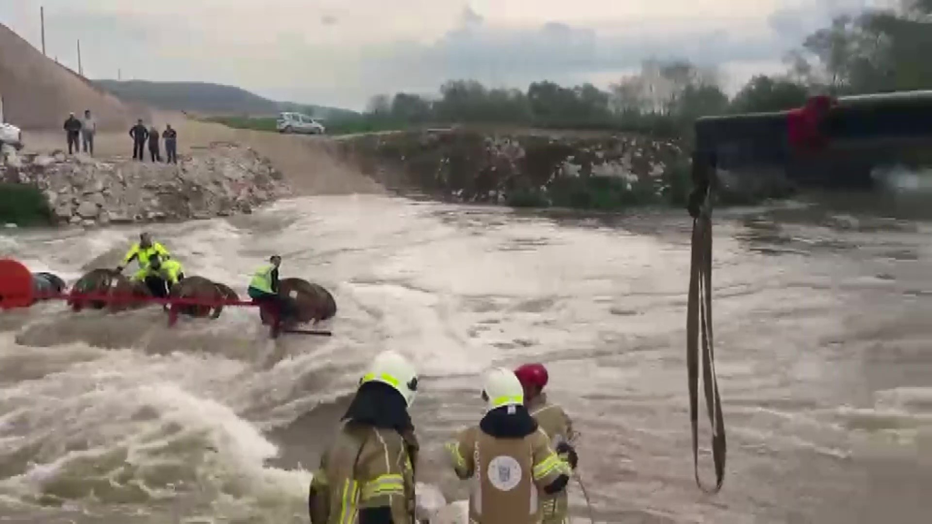 Olay, Bursa’nın Yenişehir ilçesindeki Kocasu Deresi’nde meydana geldi. Bölgede çalışan on işçinin üzerinde bulunduğu traktör, karşı kıyıya geçmek isterken suyun debisinin yükselmesiyle dengesini kaybetti. Akıntıya direnemeyen traktör dere ortasında devrilince, işçiler azgın suların ortasında mahsur kalarak yardım beklemeye başladı.