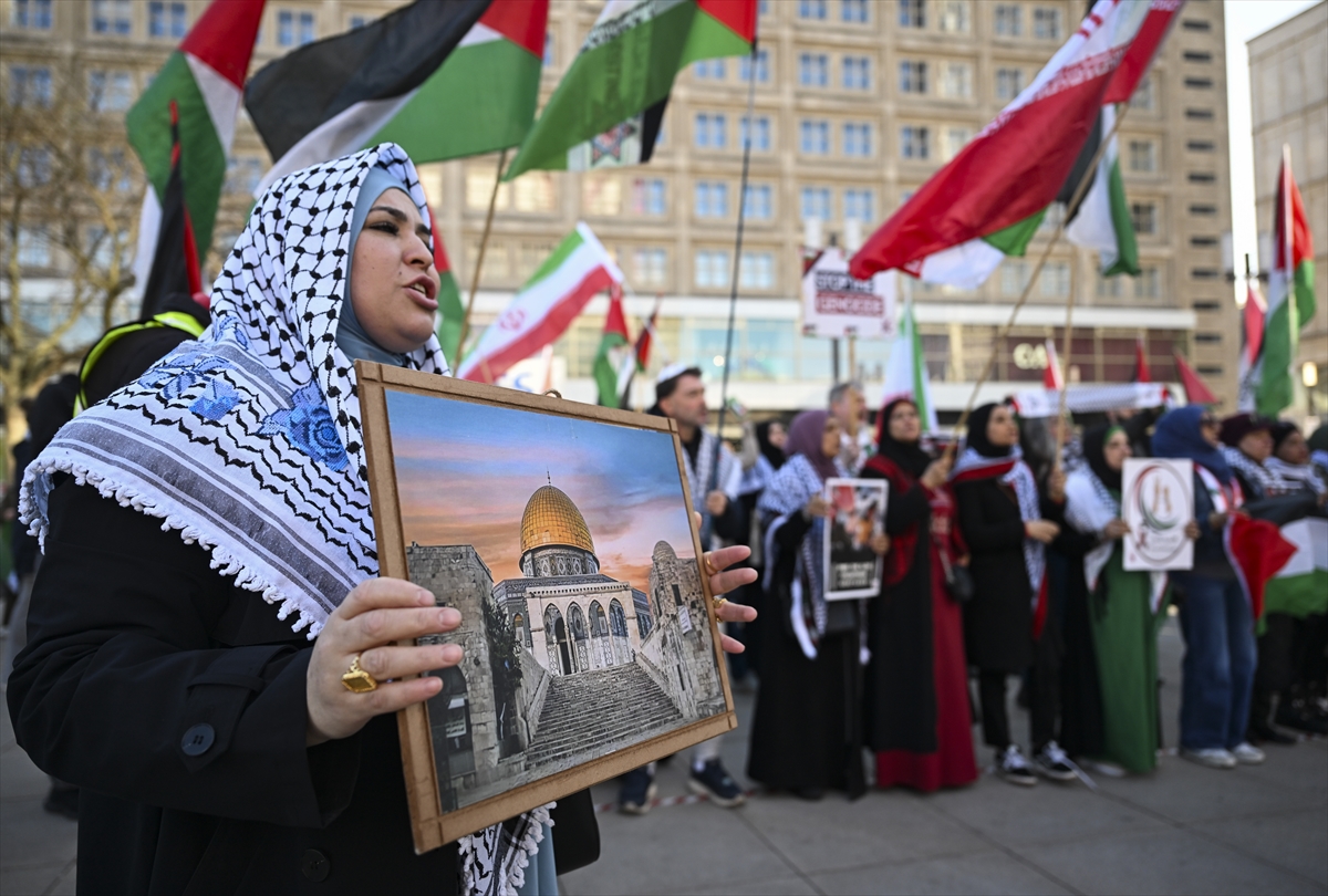 Göstericiler, Filistin bayrakları ile üzerinde “Soykırımı durdurun”, “Filistinli esirleri serbest bırakın” yazan dövizler ve Mescid-i Aksa’nın fotoğrafını taşıdı. Eylemde, sembolik olarak Filistinli esirlerin darağacına götürülmesi canlandırıldı. Göstericiler, İsrail’in Gazze’ye, İran’a ve Lübnan’a yönelik saldırılarına tepki gösterdi ve Almanya’nın İsrail’e silah tedarik etmesini eleştirdi. Geniş güvenlik önlemlerinin alındığı gösteri, olaysız sona erdi. >>>AA