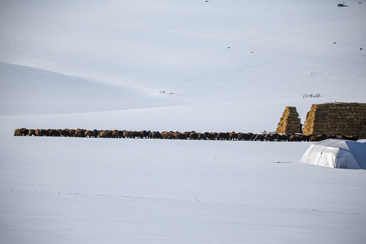 Yazın ahırların yakınında istifledikleri otları kar altından çıkaran besiciler, yemleri zaman zaman sırtlarında, zaman zaman da naylon ve kızaklar üzerinde taşıyarak kardan temizledikleri alana seriyor. Kuzu doğumlarının başlamasıyla iş yükleri daha da artan besiciler, hem karla hem de dondurucu soğuklarla mücadele ediyor. Besicilerden Doğan Gülcü, hayvancılığı çocukluğundan bu yana yaptığını ve bölgedeki soğuk havaya artık alıştıklarını söyledi. İlçede sıcak havayı gördüklerinde şaşırdıklarını ifade eden Gülcü, “2-3 metre kar yağıyor. Bu zorlukların arasında hayvanlara kar üstünde yem vermeye çalışıyoruz. Hayvanları 6 ay içeride, 6 ay dışarıda besliyoruz. Yaklaşık 250 koyunum var. Zahmetimiz ikiye katlandı. Kışın çok zorlanıyoruz. Doğumlar yeni başladı, şu ana kadar 70-80 koyun doğum yaptı.” diye konuştu.