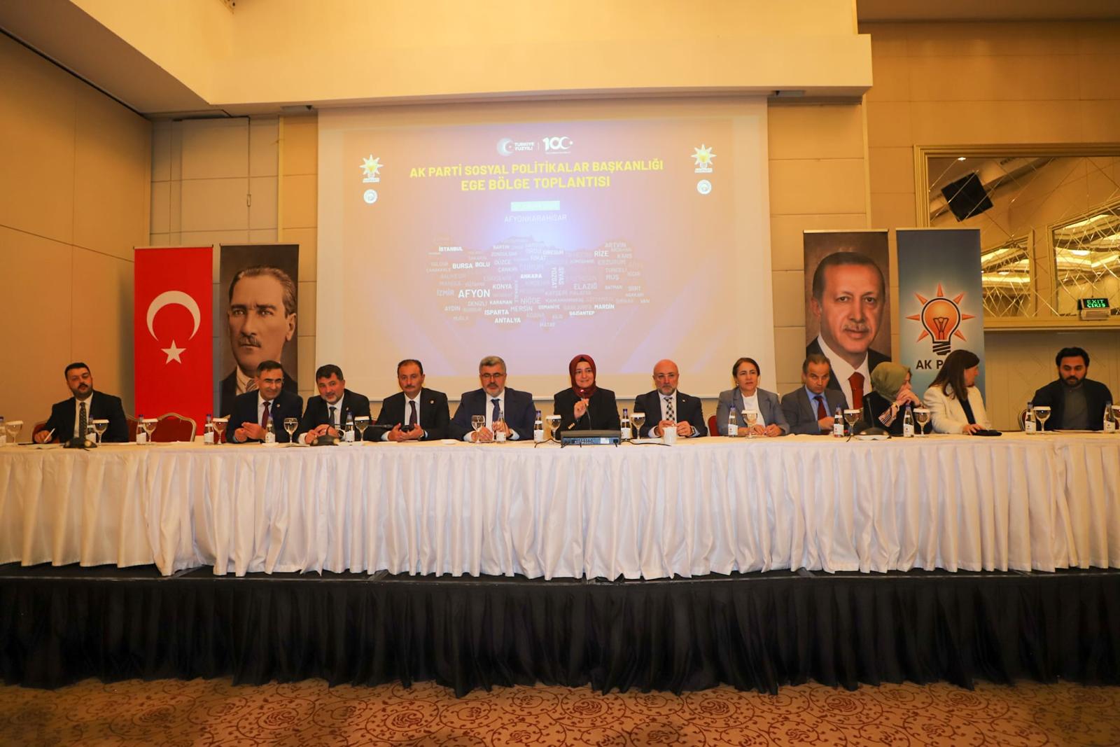 Toplantıya başkanlık eden Genel Başkan Yardımcısı Fatma Betül Sayan Kaya, yaptığı konuşmada sosyal politikaların Türkiye’nin birlik ve beraberliğini güçlendiren temel unsurlardan biri olduğunu belirtti. Kaya, “Birlik, beraberlik, dayanışma ve kardeşliği güçlü kılarak terörsüz Türkiye sürecini nihayete erdireceğiz.” ifadelerini kullandı. Afyonkarahisar’da NG Güral otelde gerçekleştirilen programda Kaya, Türkiye’nin son 20 yılda sosyal politikalarda ve diğer bütün alanlarda sessiz bir devrim gerçekleştirdiğini söyledi. Kaya, “Durmaksızın hane hane dolaşarak milletle gönül bağlarını güçlendiren kadrolar olarak, 2028’de Cumhurbaşkanımızı yeniden en güçlü şekilde seçilmesini sağlayacağız. Eğer siz görevinizi eksiksiz yaparsanız, Ege Bölgesi’nde sosyal politikalar birimleri en iyi şekilde hizmet verirse, biz inanıyoruz ki 2028’de Cumhurbaşkanımız bir kez daha en güçlü şekilde kazanacaktır” dedi.