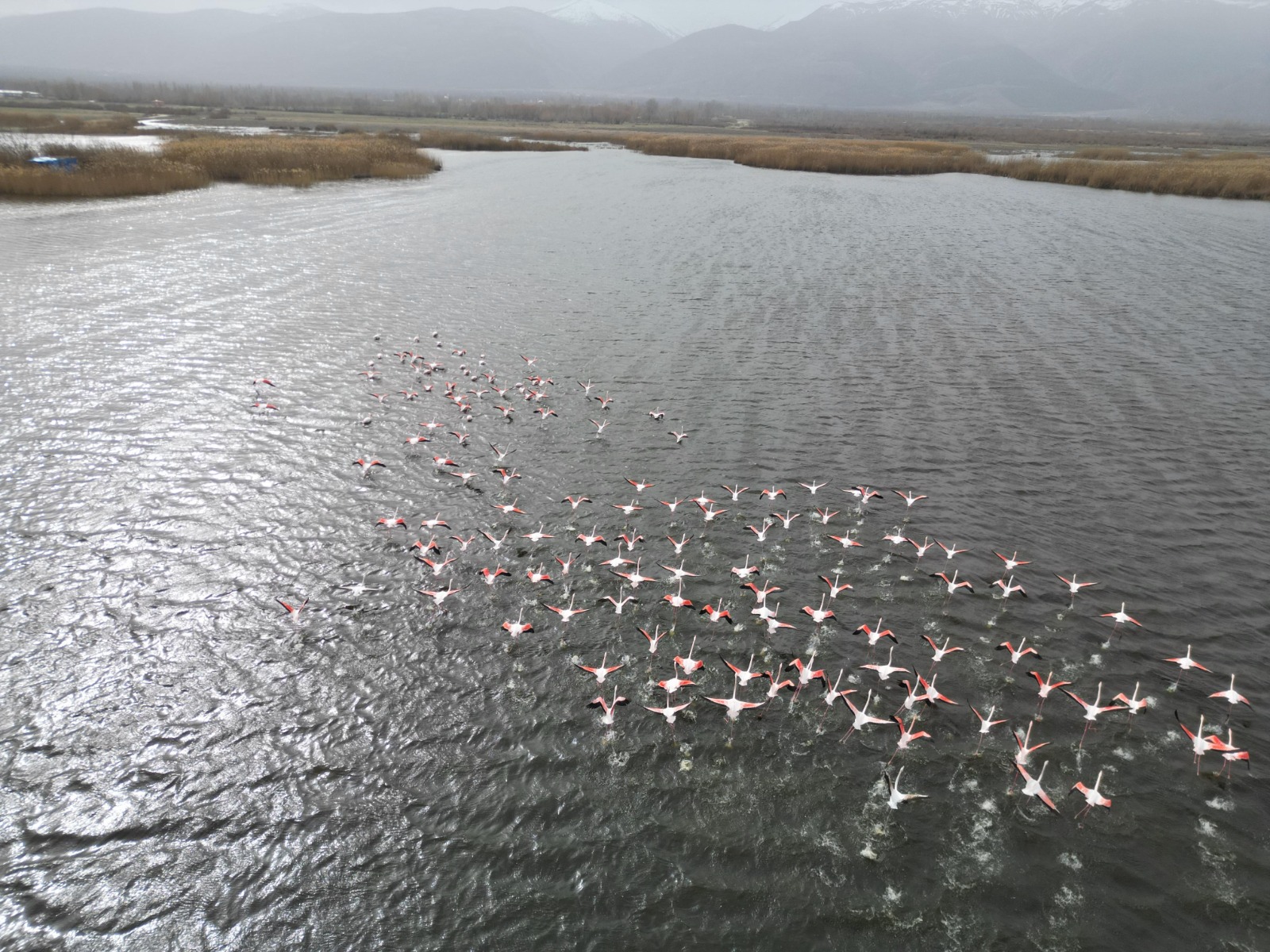 Eber Gölü’nün Bolvadin sınırları içerisinde kalan kısmında havadan dron ile görüntülenen flamingolar görsel şölen oluşturdu. Flamingoların pembe renkleri, özellikle gölün yakınından geçen vatandaşların dikkatini çekti. Bu nadir görülen manzara, bölgedeki doğal yaşamın zenginliğini bir kez daha gözler önüne sererken, gölde su seviyesinin de arttığı gözlemlendi. >>>İHA