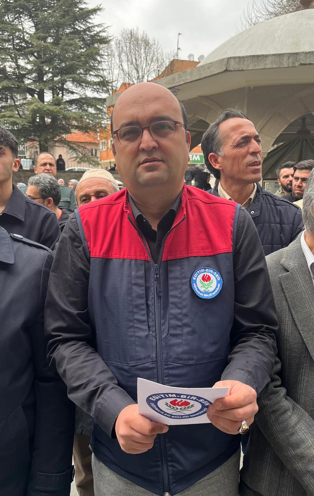 Şube Başkan Vekili Eralp Ekrem Geçe tarafından okunan açıklamada, eğitim camiasının yaşanan acılardan derin üzüntü duyduğu ifade edildi. Geçe, eğitim çalışanlarının güvenliğinin sağlanması gerektiğini vurgulayarak, okulların korunmasına yönelik daha kapsamlı tedbirlerin önemine dikkat çekti: “Bugün burada yürekleri yakan saldırıların ardından Kahramanmaraş ve Şanlıurfa’da şehit düşen öğretmenimiz ve öğrencilerimiz için bir araya geldik. Rabbimizden niyazımız onları rahmetiyle kuşatması, geride kalanlara sabır ihsan etmesidir. Bulunduğumuz bu mübarek mekanın mehabetine yakışır bir vakarla hareket ediyoruz. Bizler, acıyı paylaşarak hafifleten bir anlayışın temsilcileriyiz. Bugün burada, kaybettiğimiz canlar için gıyabi cenaze namazı kılıyoruz, aynı zamanda dualarımızla kaybettiğimiz canları Rabbimize emanet ediyoruz. Bu vesileyle, eğitimin ve öğretmenin değerini her fırsatta hatırlatan Diyanet yetkililerine teşekkür ediyoruz. Zira dinimizin ilk emri ‘Oku’dur. Öğretmenlik, peygamber mesleğidir. Hz. Ali’nin “Bana bir harf öğretenin kırk yıl kölesi olurum.” sözü ilme ve öğretmene verilen değerin en güçlü ifadesidir.”