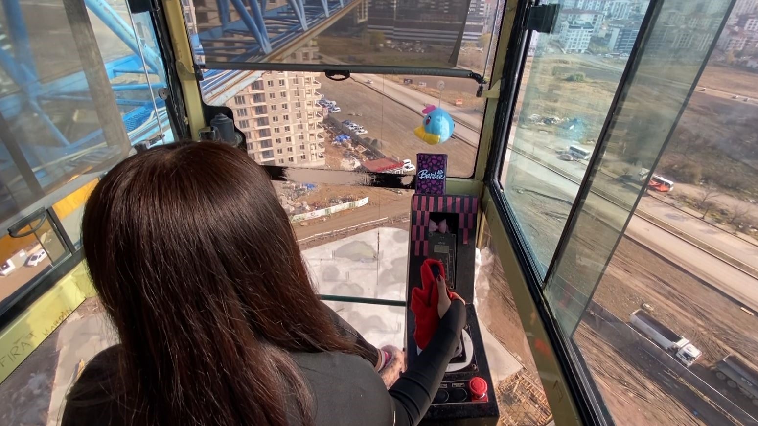 -Annesinin tavsiyesiyle 20 yaşında kule vinç operatörü olan Mera Coşkun, metrelerce yükseklikte çalışarak, ekmeğini gökyüzünde kazanıyor.