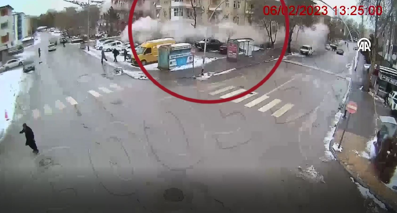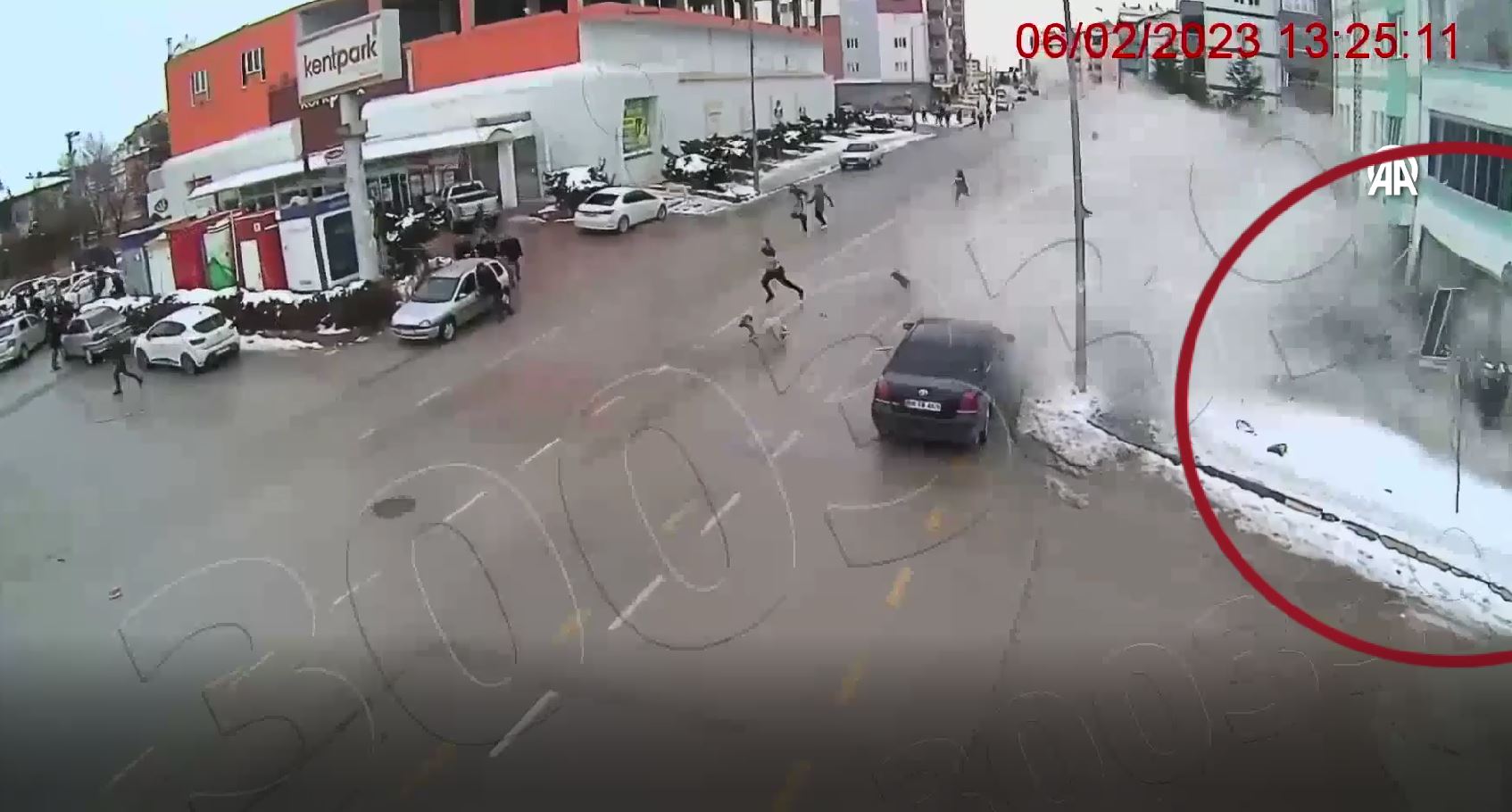 Büyük Kentpark karşısındaki kamera kayıtlarında da bir binanın ilk iki katının çöktüğü, insanların panikle kaçtığı ve dengelerini kaybetmemek için araçlara tutunduğu anlar yer aldı.