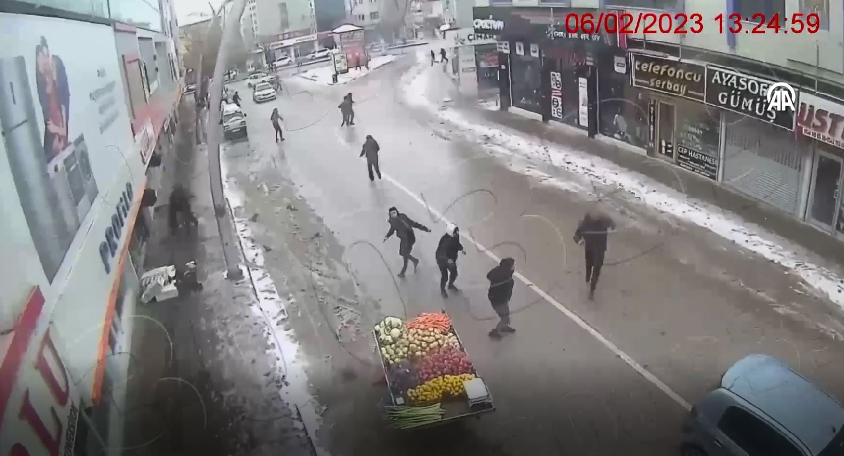 Sarsıntının en net şekilde görüldüğü kayıtlardan birisi de Gariplik Caddesi’nde kaydedildi. Depremin etkisiyle vatandaşların ayakta durmakta zorlanarak birbirlerine tutunmaları, çöken binalardan yükselen toz bulutu, vatandaşların cep telefonlarıyla yakınlarını aramaları ve yıkılan binaların enkazında kalanlara yardıma koşmaları kameralarca anbean kayıt altına alındı. >>>AA