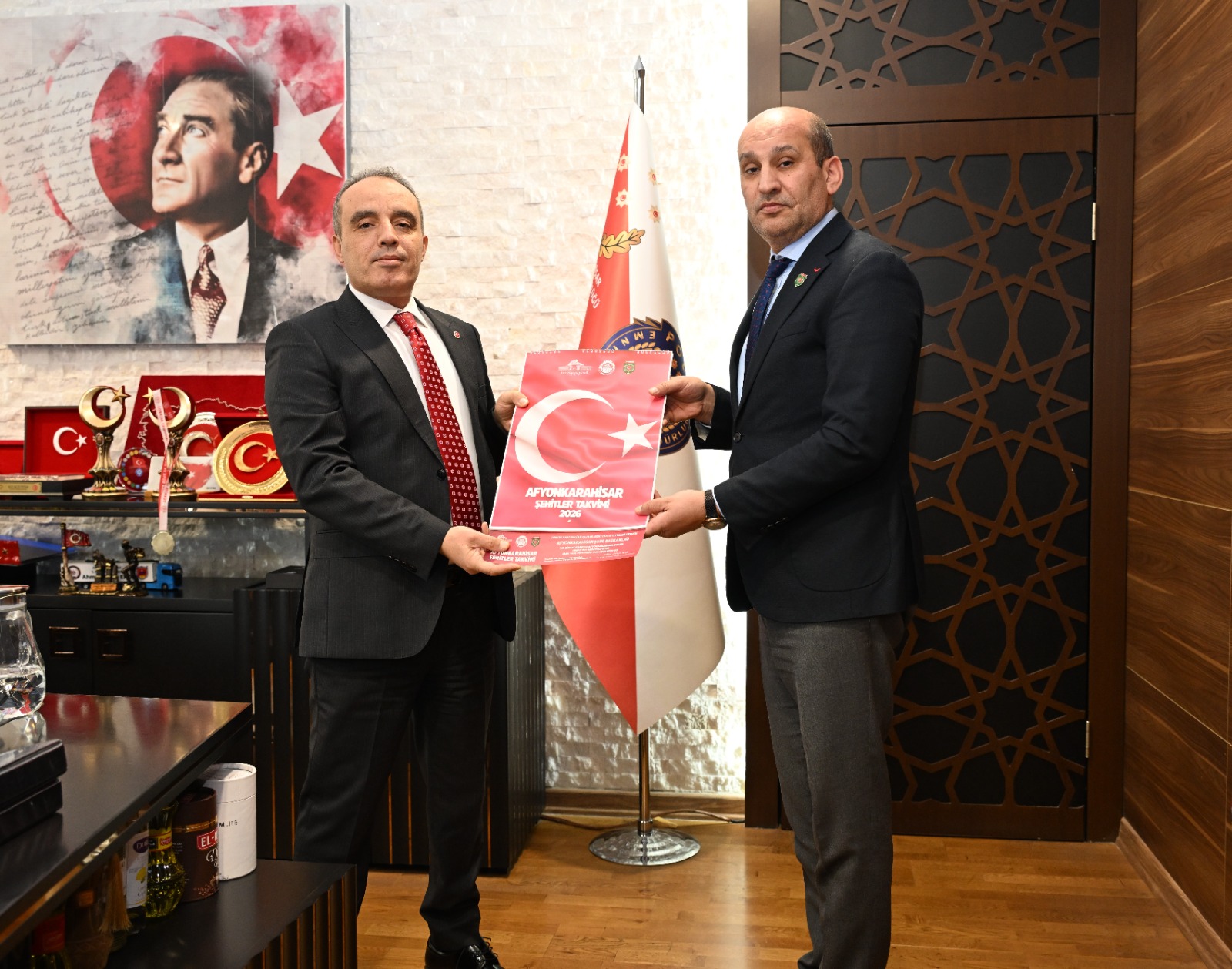 Dernek başkanı Malul Gazi İsmail Kumartaşlı ve beraberindeki heyet, Afyonkarahisar İl Emniyet Müdürü Ahmet Birtan Erol’u makamında ziyaret etti. Ziyaret kapsamında, vatan uğruna canlarını feda eden aziz şehitlerimizin hatırasını yaşatmak amacıyla hazırlanan Afyonkarahisar Şehitler 2026 Takvimi, Sayın İl Emniyet Müdürü Ahmet Birtan Erol’a takdim edildi.