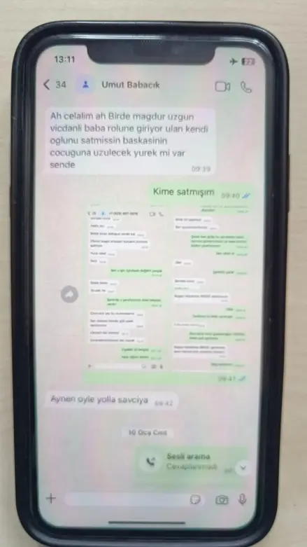 Celal Altıntaş’ın oğlunun yazdıklarının ekran görüntüsünü mesaj olarak yollaması üzerine Umut Altaş: Aynen öyle yolla savcıya.
