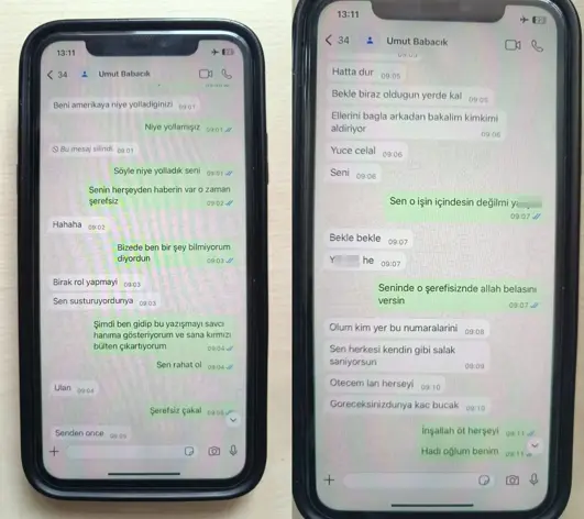 Dosya kapsamında hakkında kırmızı bülten çıkarılan ABD’deki Umut Altaş ile tutuklu babası Celal Altaş arasındaki WhatsApp yazışmaları ortaya çıktı. Yazışmalarda baba oğlun birbirlerini suçladığı, hakaret ve tehditlerde bulunduğu görüldü.