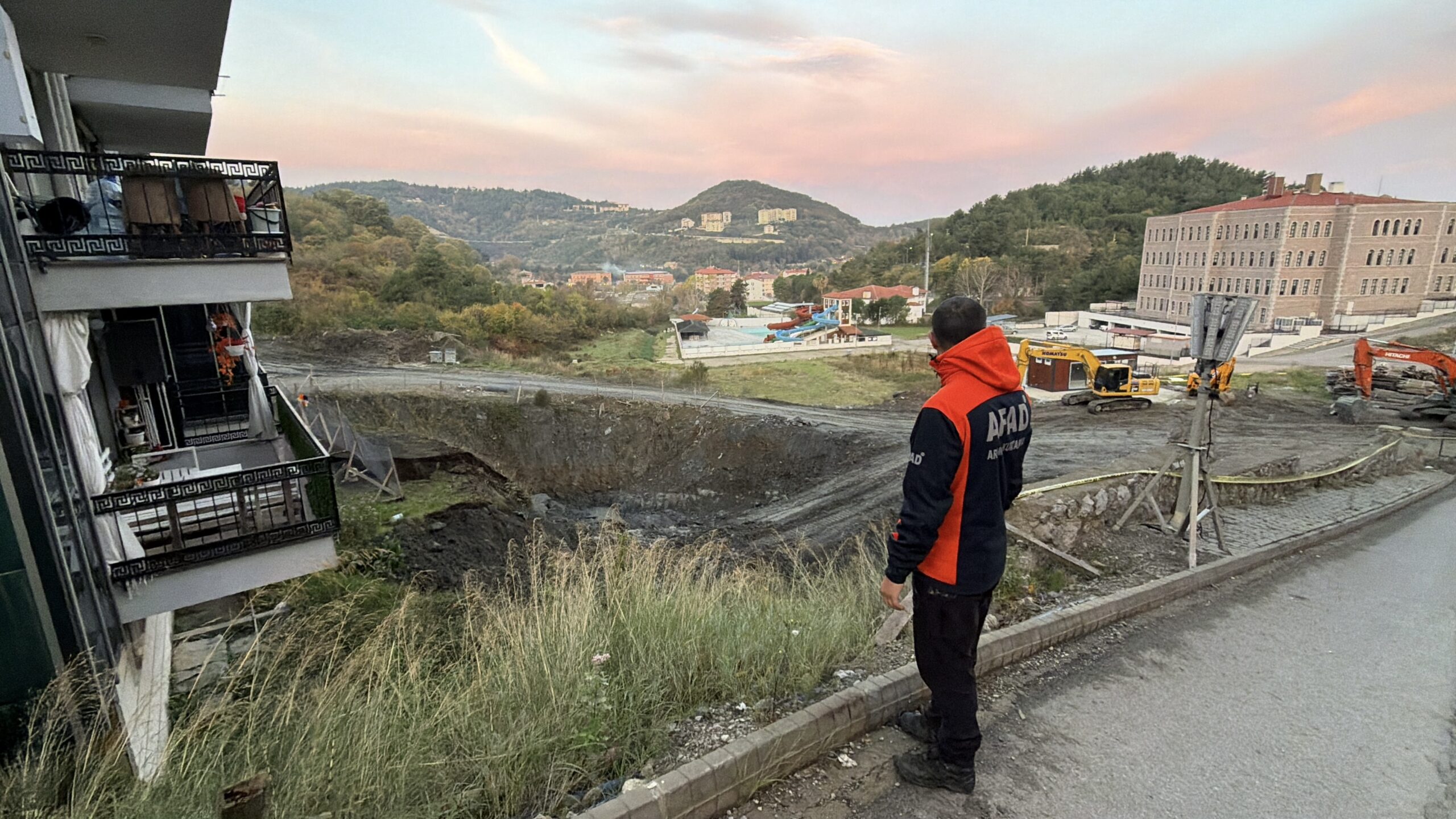 Bartın’ın Amasra ilçesinde bir inşaat çalışması sırasında toprak kayması nedeniyle, 24 daireli apartmandaki 70 kişi tedbir amaçlı evlerinden tahliye etti. Fotoğraf: Ayhan ACAR/Bartın, (DHA)