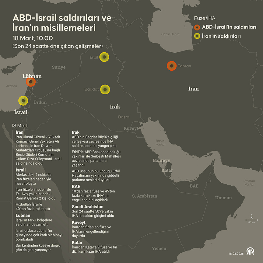 İsrail ordusundan yapılan açıklamada, İran’dan füzelerin ateşlendiği ve hava savunma sistemlerinin İran füzelerini önlemeye çalıştığı belirtildi. İsrail’in Aşdod (Askalan), Herzliya gibi Tel Aviv’in güneyindeki kentleri ile işgal altındaki Doğu Kudüs’te İran füzeleri nedeniyle sirenler çaldı. İsrail’in Kanal 12 televizyonu, füzelerin hava savunma sistemleri tarafından önlendiğini ileri sürerek yaralanma bilgisinin bulunmadığını aktardı. >>>AA