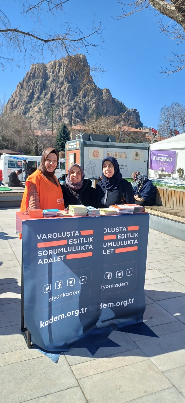 Kadın ve Demokrasi Derneği (KADEM) Afyonkarahisar İl Temsilciliği tarafından kurulan stantta, kadın hakları, kadınların toplumdaki yeri ve kadınların güçlendirilmesine yönelik çalışmalar hakkında bilgilendirme yapıldı. Vatandaşlarla bir araya gelen dernek üyeleri, kadınların sosyal, ekonomik ve kültürel hayatta daha güçlü bir şekilde yer almasının önemine dikkat çekti. Program kapsamında açıklamalarda bulunan KADEM Afyonkarahisar İl Temsilcisi Huriye Akçay, 8 Mart Dünya Kadınlar Günü ile ilgili olarak şu ifadelere yer verdi: “Kadınların toplumdaki yerinin güçlenmesi, haklarının korunması ve fırsat eşitliğinin sağlanması için çalışmalarımızı sürdürüyoruz. 8 Mart Dünya Kadınlar Günü vesilesiyle Zafer Meydanı’nda kurduğumuz bu stantla hem farkındalık oluşturmayı hem de vatandaşlarımızla bir araya gelerek kadınların toplumsal hayattaki önemine dikkat çekmeyi amaçladık.” Kurulan stantta gün boyunca vatandaşlara çeşitli bilgilendirmeler yapılırken, kadınların toplumdaki rolü ve önemi üzerine farkındalık oluşturulması hedeflendi. KADEM Afyonkarahisar İl Temsilciliği yetkilileri, kadınların güçlenmesine yönelik çalışmaların devam edeceğini belirtti. >>>Haber Merkezi