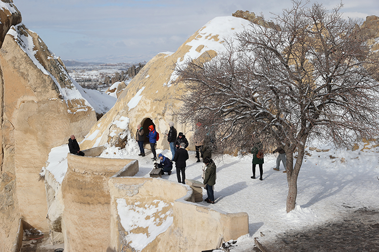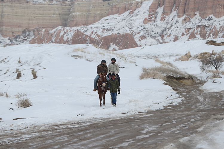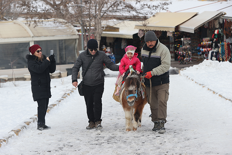 UNESCO Dünya Miras Listesi’nde yer alan Kapadokya, yarıyıl tatilinde öğrenci ve ailelerin gözde turizm merkezlerinden oldu. Vadilerde ATV arazi araçları ve atla düzenlenen etkinliklere katılan tatilciler, peribacaları arasında gezinti yapıp karla kaplanan manzarada fotoğraf çektiriyor. Doğal kaya oluşumları arasında kar topu oynayarak eğlenen çocuklar, tarihi mekanları geziyor. Çevre illerden gelen günübirlik ziyaretçilerin yanı sıra, bölgede konaklamayı tercih eden misafirler otellerde hareketliliği artırdı.