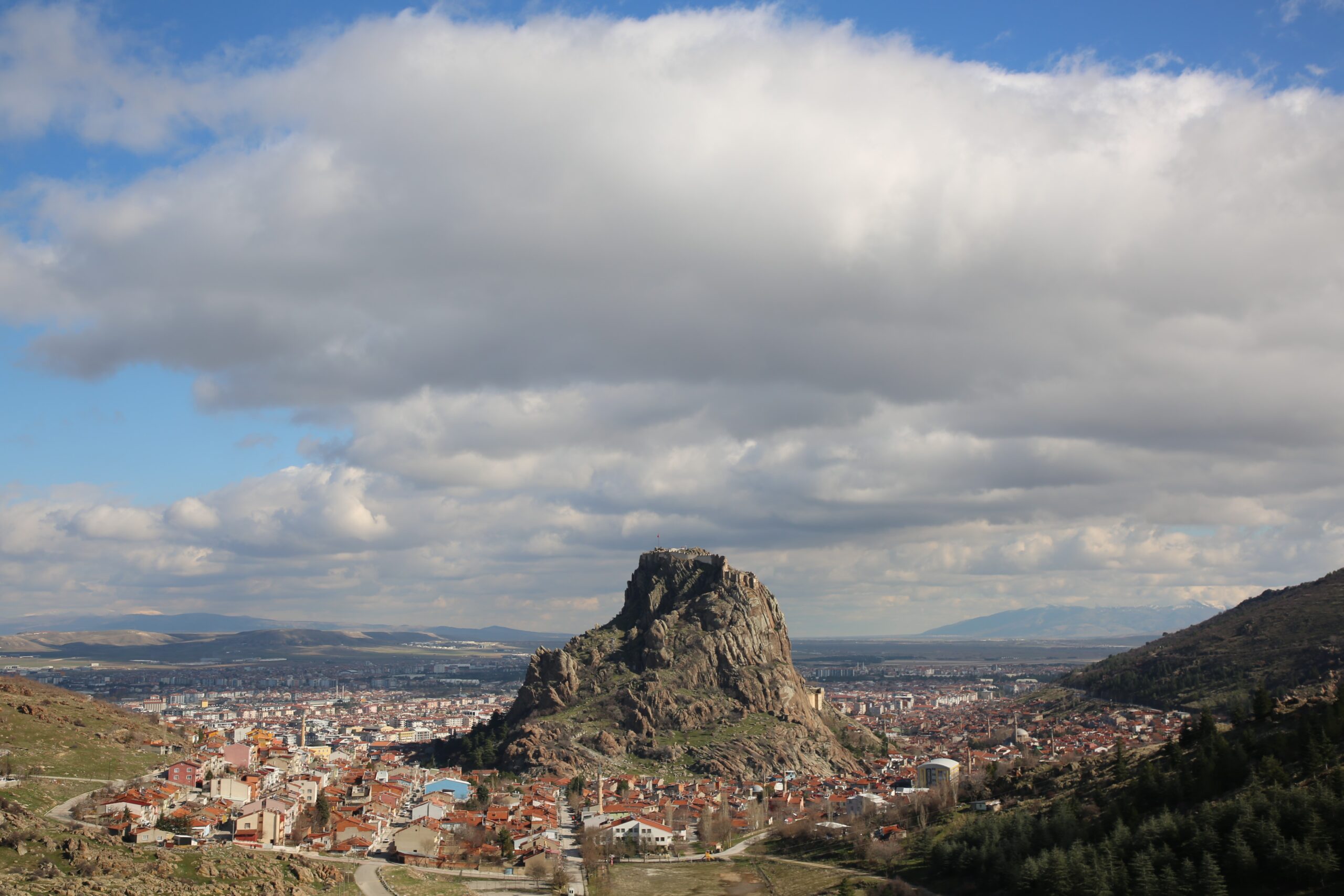 Afyon Kocatepe Üniversitesi (AKÜ) Basın Yayın ve Halkla İlişkiler Müdürlüğü’nde görevli Araştırma Görevlisi Hakan Yılmaz tarafından kaydedilen görüntülerde, bulutların adeta bir dans sergilediği görüldü. Hareket halindeki bulutların oluşturduğu gölgelerin, kalenin sarp kayalıkları ve tarihi surları üzerine düştüğü anlar, ışığın kırılmasıyla birlikte masalsı bir atmosfer oluşturdu.