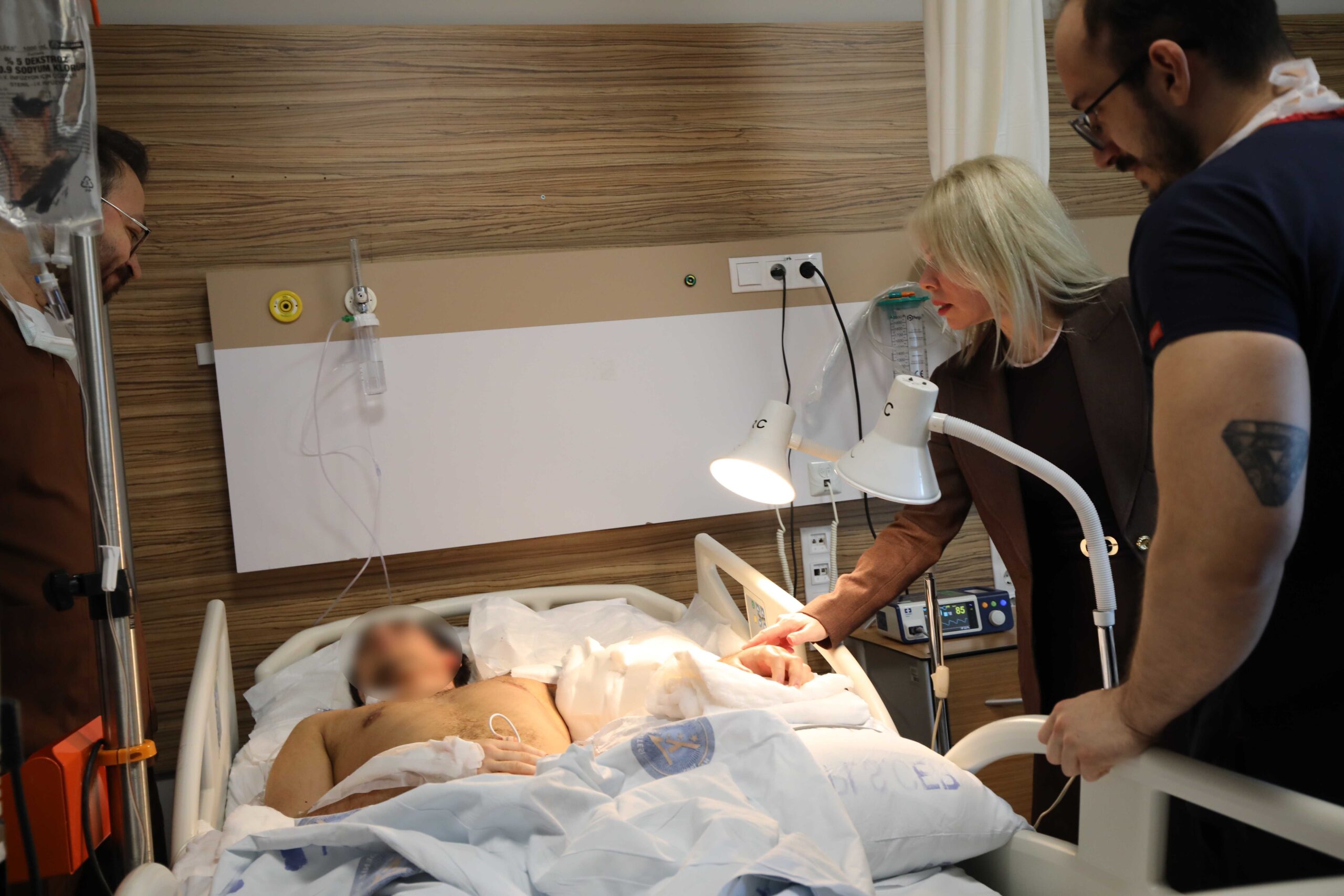 ANTALYA’DA 10 KİŞİNİN HAYATINI KAYBETTİĞİ OTOBÜS KAZASINDA KOLU VE BACAĞI KOPAN HASTALAR AYNI ANDA 10 SAAT SÜREN AMELİYATLA OPERE EDİLDİ. PROF. DR. ÖZLENEN ÖZKAN HASTALARI ZİYARET ETTİ (MEHMET SALİH ESER/ANTALYA-İHA)