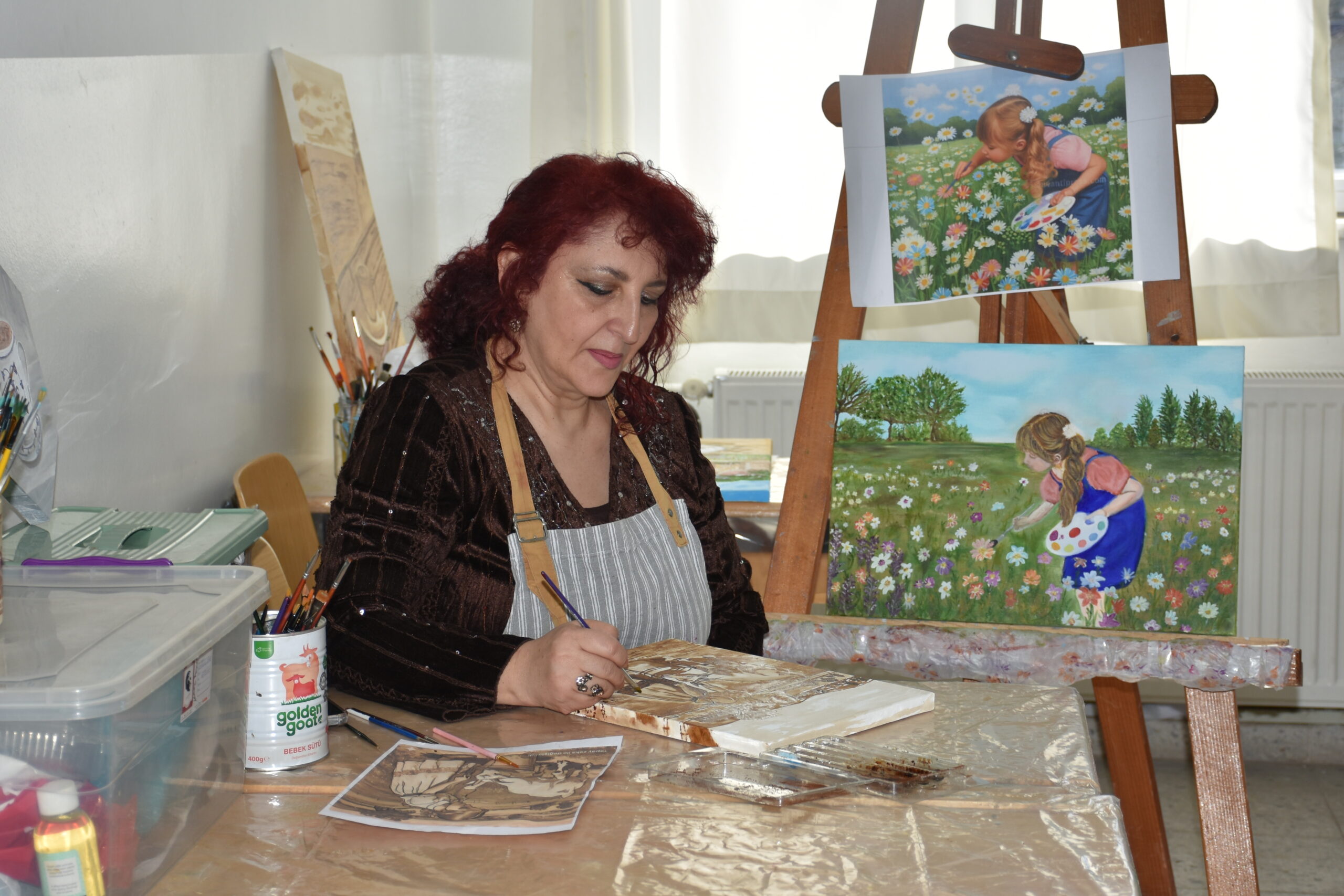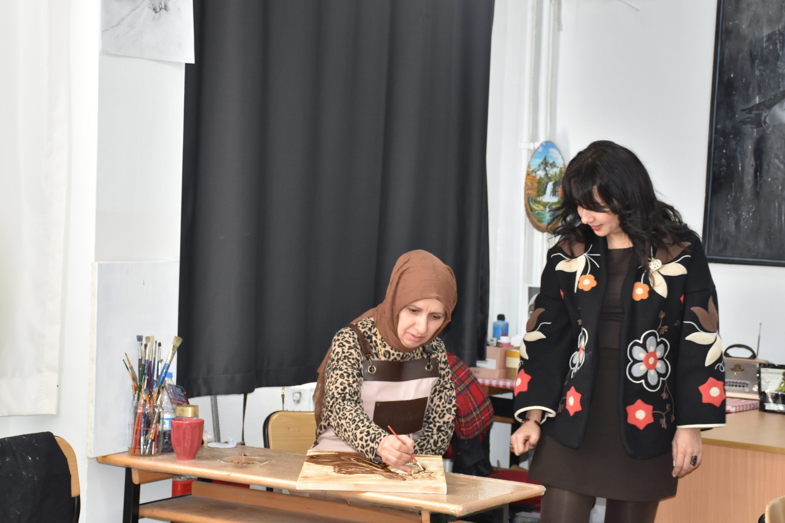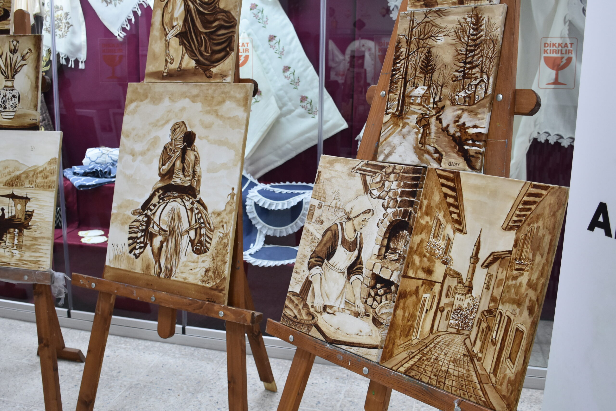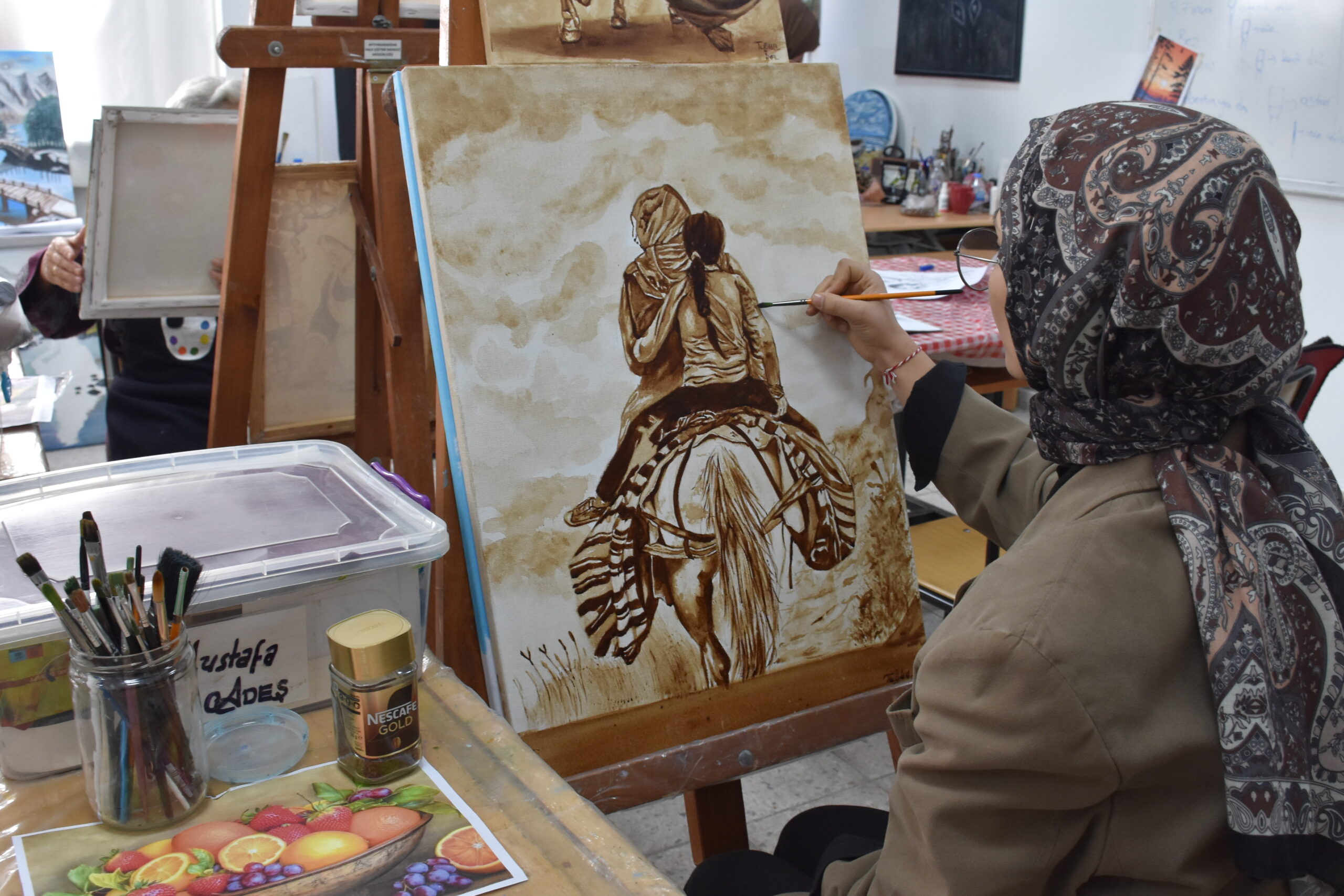 Bir kursiyerinin, “Boya dışında başka nelerden resim yapabiliriz?” diye sorduğunu belirten Çakar, şunları kaydetti: “Ben de ‘Renk veren her şeyden resim yapabiliriz. Sanatta sınırlama olmaz hatta bu içtiğimiz kahveden bile resim yapabiliriz.’ dedim. O an elimizdeki kahvelere başka gözle baktık ve kahveden resim yapmaya başladık. Bir kahveyle başlayan sohbetimizi, bir kahveyle resim sergisine dönüştürdük. Kursumuzda 15 kursiyerimiz var. Yaptığımız çalışmalarla karma sergilere katılıyoruz. Güzel çalışmalarımız oldu. 40 yıllık kahvenin hatırını sadece gönüllere değil tuvallere de bırakmak istedik.”
