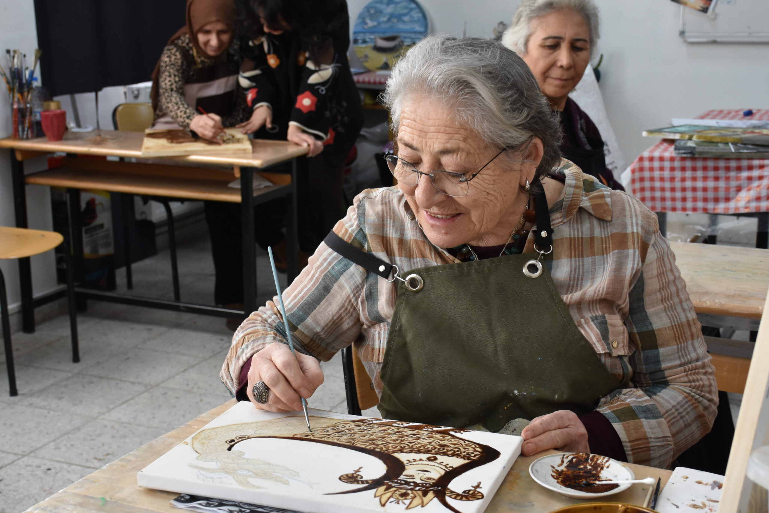 Kursiyerlerden emekli öğretmen Sema Aytaç (74) da meslek hayatında çok aktif olduğunu dile getirdi. Emekli olduktan sonra uğraş bulma çabasına girdiğini anlatan Aytaç, “Sonra bu kursa katıldım, ilk defa kahve ile resim yapıyorum, çok güzel. Hayatın içinde keyifle içtiğimiz, enerji bulduğumuz kahveyi fincandan tuvale geçirmek ayrı bir keyif oldu bizim için. İçerken verdiği keyfi, yaparken de veriyor.” dedi.