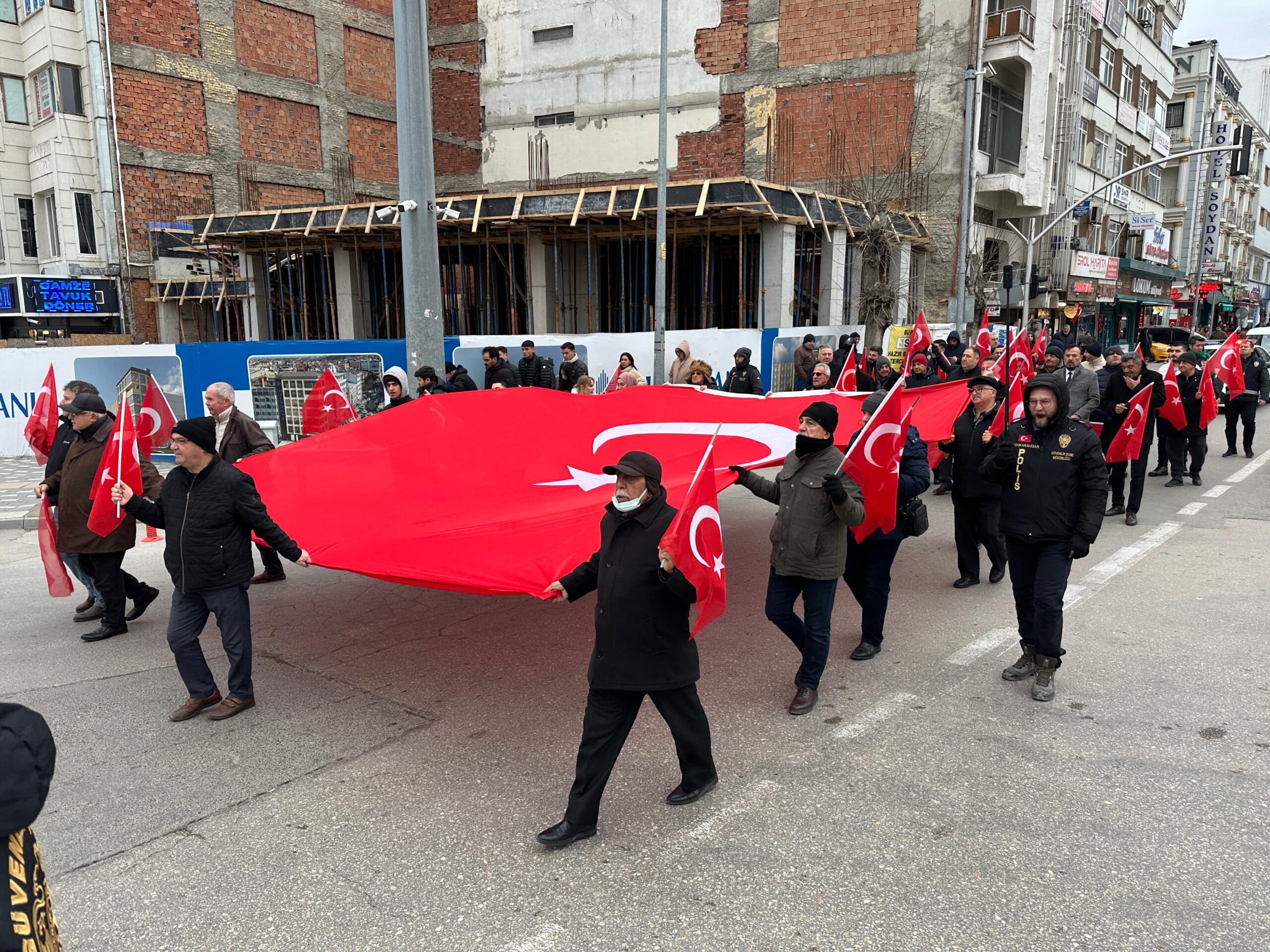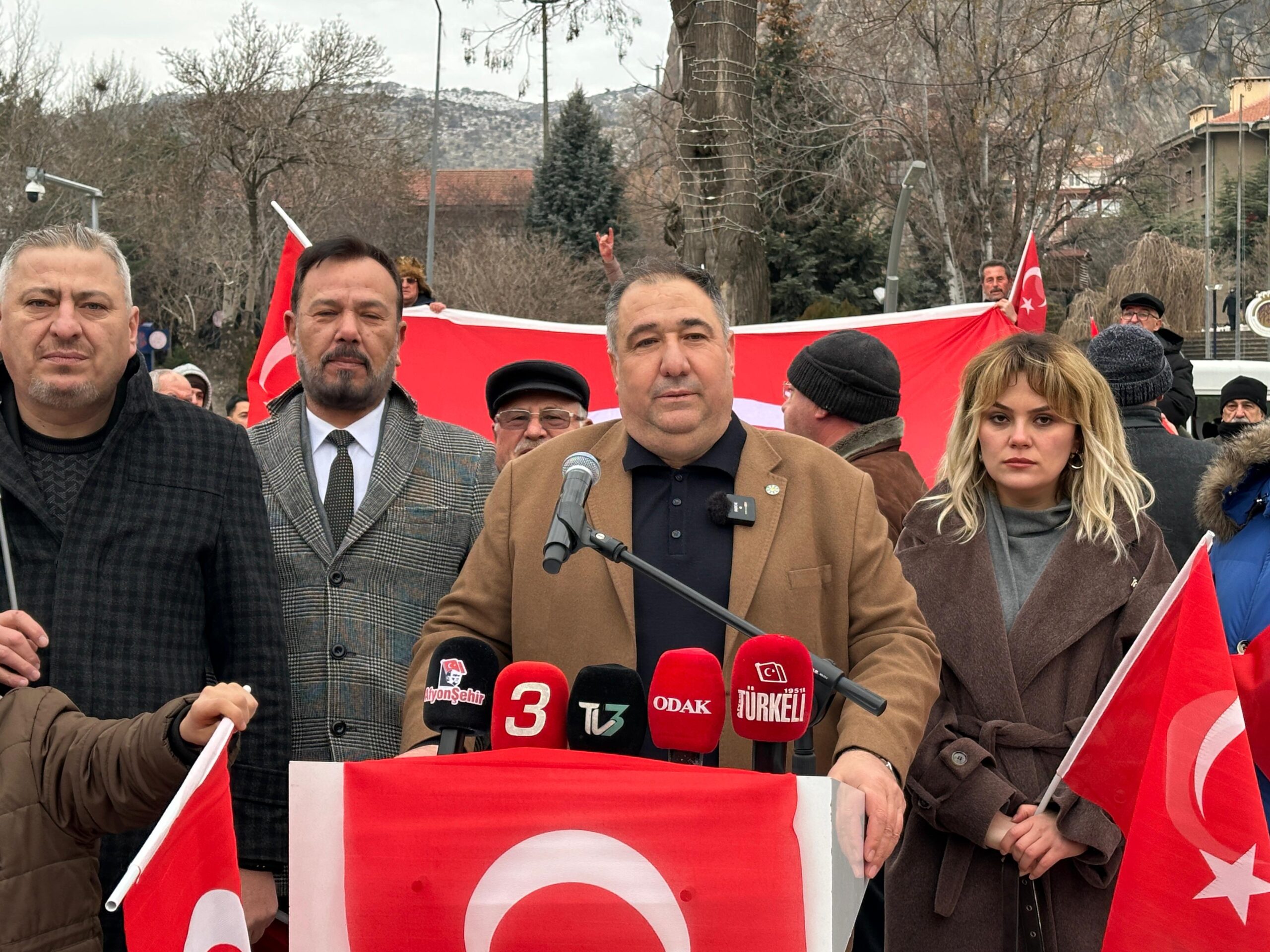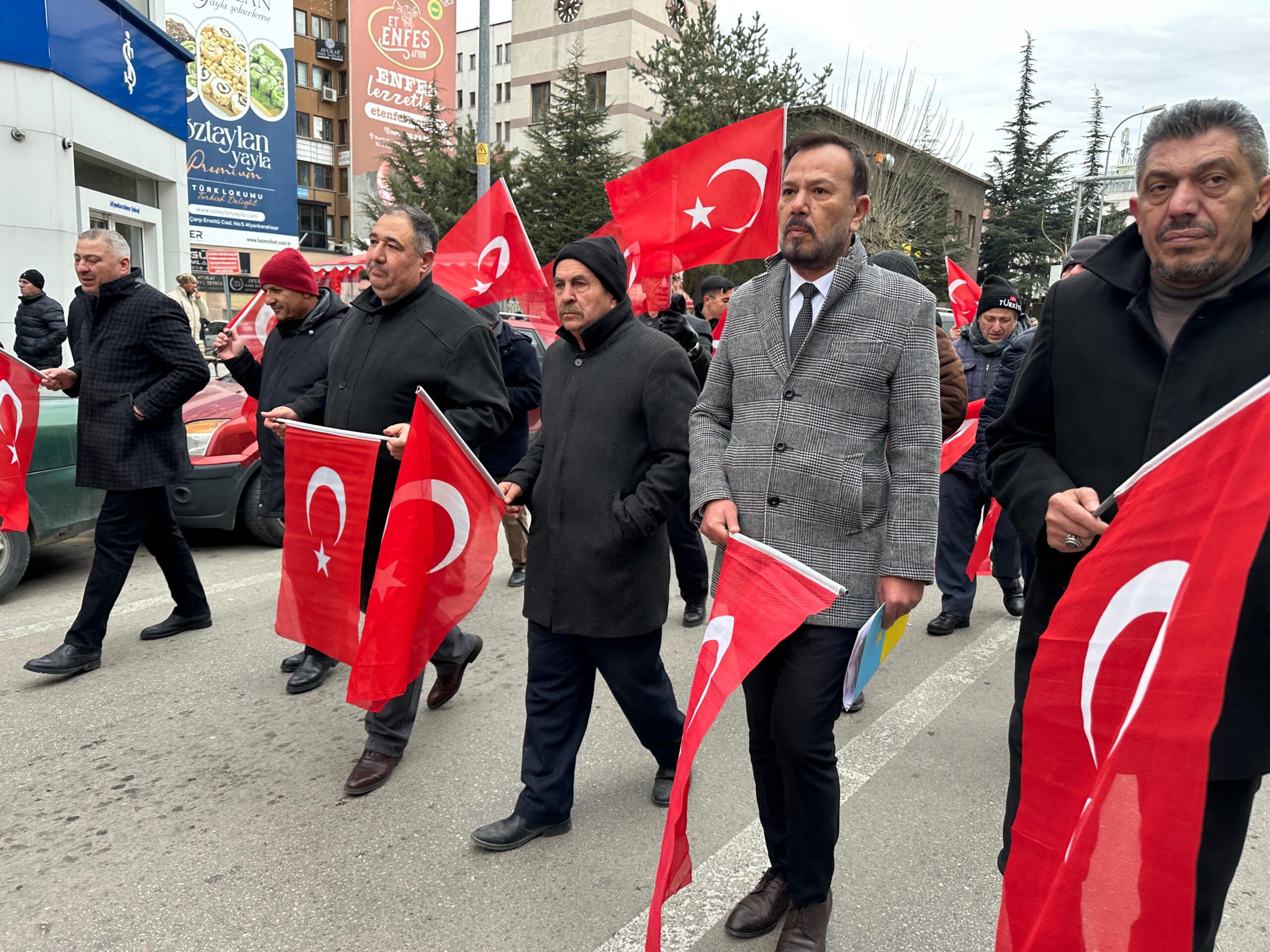 Yaklaşık 6 metre uzunluğundaki Türk bayrağı eşliğinde yapılan yürüyüşte, bayrağa yönelik saldırılara tepki gösterildi. Yürüyüşün ardından Zafer Meydanı’nda toplanan kalabalığa hitap eden İYİ Parti Afyonkarahisar İl Başkanı Muhammet Mısırlıoğlu, bir basın açıklaması yaptı.