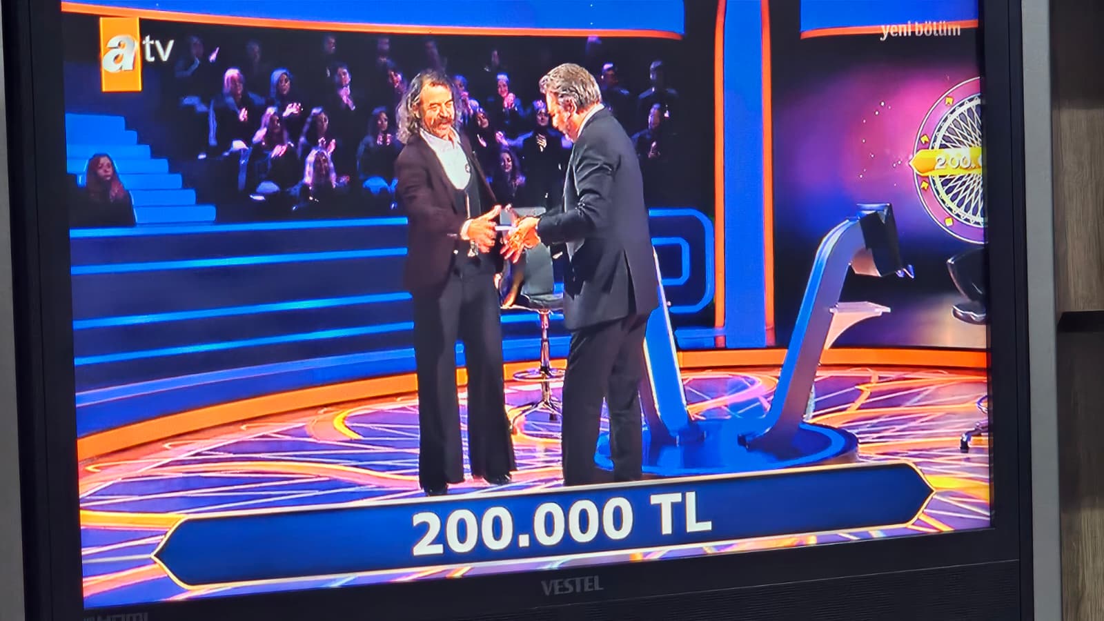 Devletime güveniyorum sözleriyle dikkat çeken Pala Dayı, 200 bin TL’lik soruda yarı yarıya ve çift cevap joker haklarını kullanarak doğru yanıt verdi. Bu sonuçla toplam ödülünü 200 bin TL’ye yükseltti ve 300 bin TL’lik soruyu açtırmaya hak kazandı.