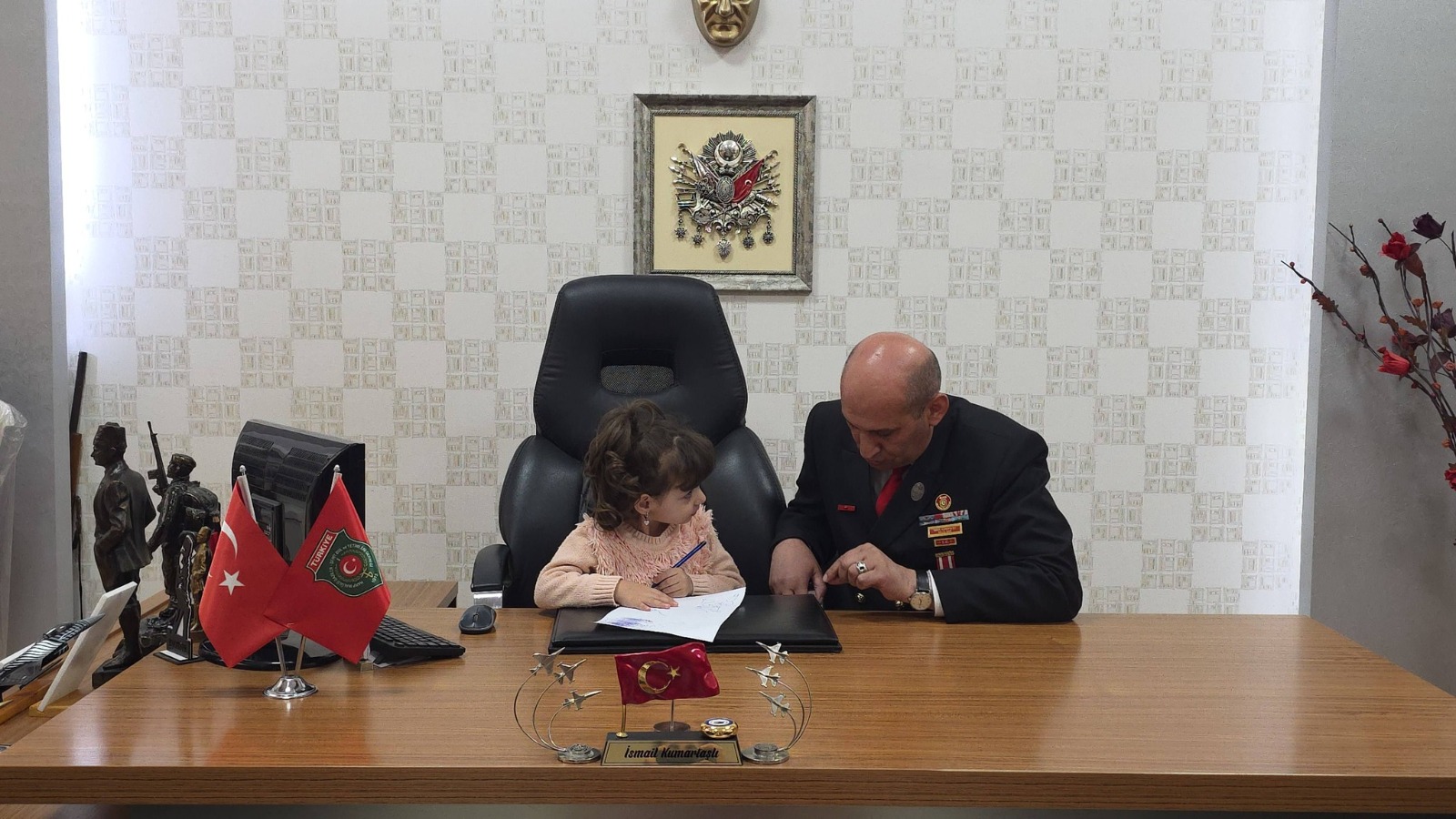 Başkan Kumartaşlı, geçtiğimiz yıl Irak’ta mayın patlaması sonucu şehit olan Uzman Çavuş Önder Özen’in kızı küçük Alya’yı makamında ağırladı. 23 Nisan kapsamında gerçekleştirilen temsili devir teslimde, minik Alya başkanlık koltuğuna oturarak günün “başkanı” oldu. Alya ile yakından ilgilenen Kumartaşlı, ona Şehit Aileleri ve Gaziler için neler yapmak istediğini sordu. Minik başkan Alya da çeşitli evraklara imza atarak görevini yerine getirdi. Minik Başkan Alya, Kumartaşlı’ya, Şehit ve Gazi çocuklarına peluş ayı alınması talimatını verdi. Geçtiğimiz yıl Şehit cenaze töreninde, yakasına iğne ile babasının fotoğrafının takılması sırasında “Babamı iğne batar, canı yanar” sözleriyle hafızalara kazınan Alya, bu anlamlı günde duygusal anların yeniden yaşanmasına neden oldu. Başkan İsmail Kumartaşlı, gün boyunca minik başkan Alya’nın tüm “talimatlarını” yerine getirerek 23 Nisan’ın ruhuna yakışan özel bir etkinliğe imza attı. >>>Haber Merkezi