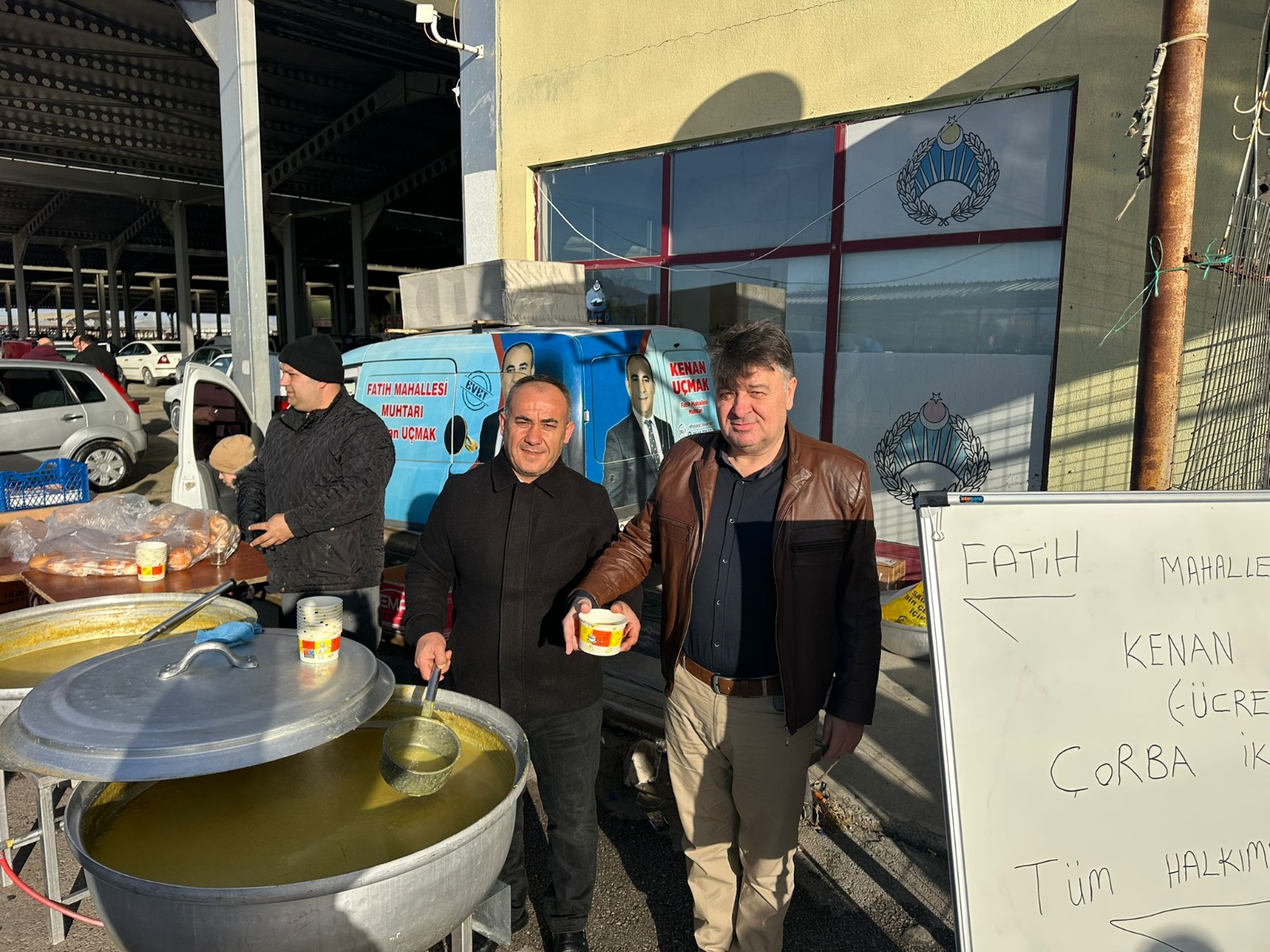 Sabahın ilk ışıklarıyla birlikte fuar alanındaki yerini alan muhtar, araç alım-satımı için bölgeye gelen vatandaşlar için kolları sıvadı. Pazarın dondurucu soğuğunda yaklaşık 1.150 kişilik sıcak çorba hazırlatan Uçmak, hem esnafın hem de araç bakmaya gelen vatandaşların içini ısıttı.