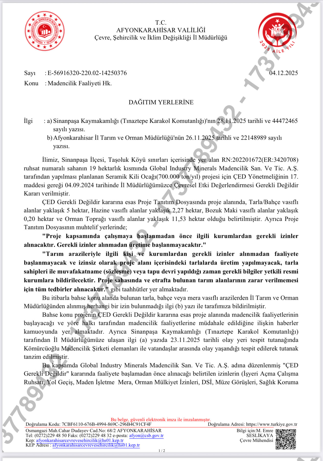 Yeşiliyle, mavisiyle, suyuyla, havasıyla gerçekten farklı bir iklim ve coğrafyası olan Beldemizde Ağustos/2025’deki yaşanan süreçte haberdar olup ilgilendiğimiz ve en son da geçen ay bizzat mahallindeki güvenlik sorunlarını sizler ve İl’imizin değerli yöneticileri ile birlikte çözüp o kepçe ve kamyonları gönderdiğimiz maden çıkarma sürecindeki hata ve eksiklikleri Çevre ve Şehircilik İl Müdürlüğümüz tespit ederek süreci durdurmuştur. Milletimizin kabul etmediği hiçbir karar bizlerden onay alamaz.