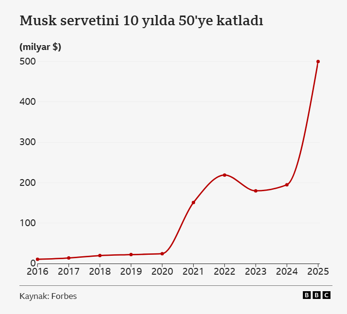 Musk, 500 milyar doların üzerindeki servetiyle dünyanın en zengin insanı.