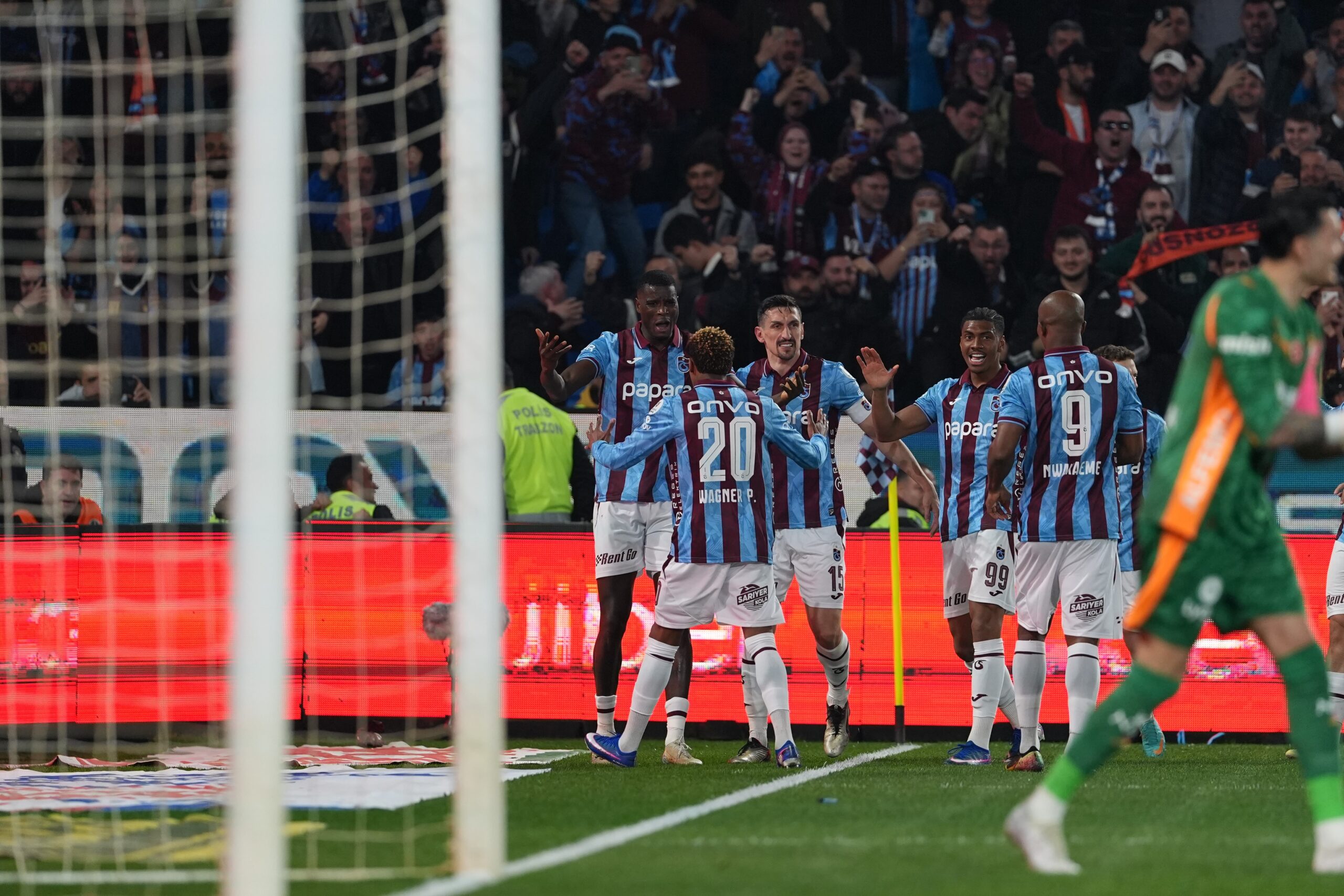 - dakikada Trabzonspor 1-0 öne geçti. Sağ taraftan rakiplerinden sıyrılan Pina’nın yaptığı ortada, ceza alanı içinde Onuachu kafa vuruşuyla meşin yuvarlağı kaleci Uğurcan Çakır’ın solundan filelerle buluşturdu.