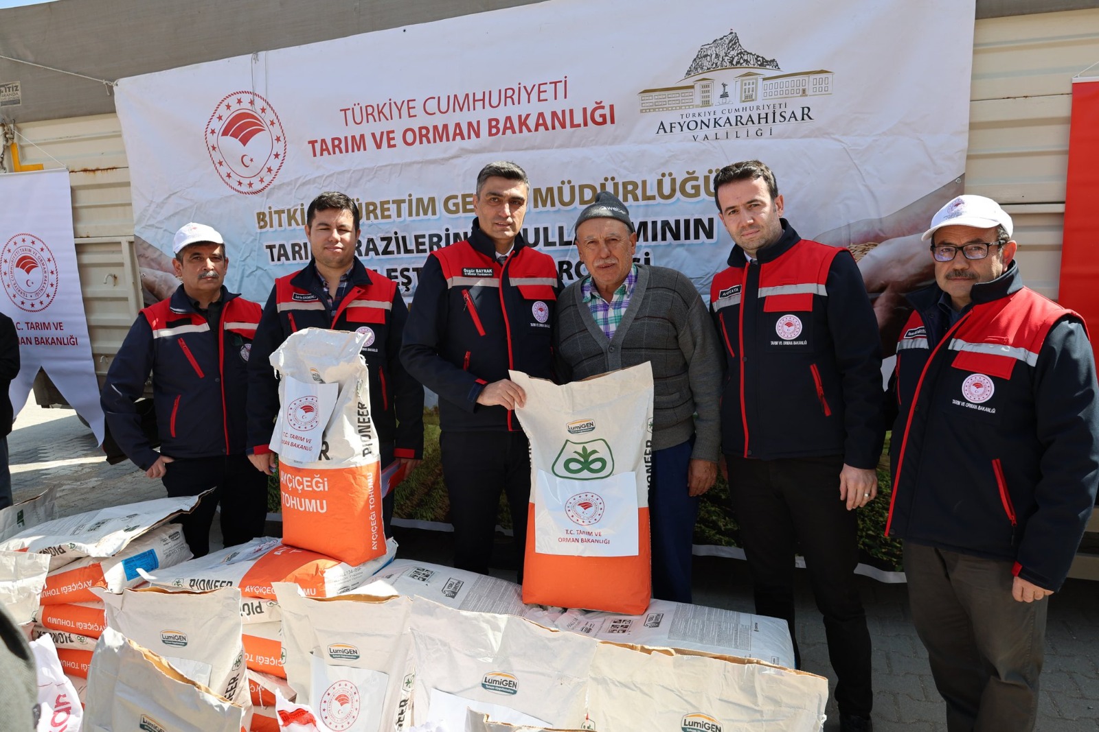 TAKEP kapsamında 2026 yılı birinci etapta “Yağlık Ayçiçeği Üretimini Geliştirme Projesi” ile “Nohut Üretimini Geliştirme Projesi” hayata geçirildi. Toplam bütçesi 12 milyon 580 bin TL olan projelerin 8 milyon TL’si Tarım ve Orman Bakanlığı tarafından hibe edildi. Tören kapsamında 157 ayçiçeği ve 86 nohut üreticisi olmak üzere toplam 243 çiftçiye 1027 torba tohum dağıtımı gerçekleştirildi. Vali Naci Aktaş’ın öncülüğünde yürütülen çalışmalarla Afyonkarahisar’da tarımsal üretimin daha da güçlenmesi beklenirken, üreticiler de verilen desteklerden duydukları memnuniyeti dile getirdi. >>>Mustafa BAYER