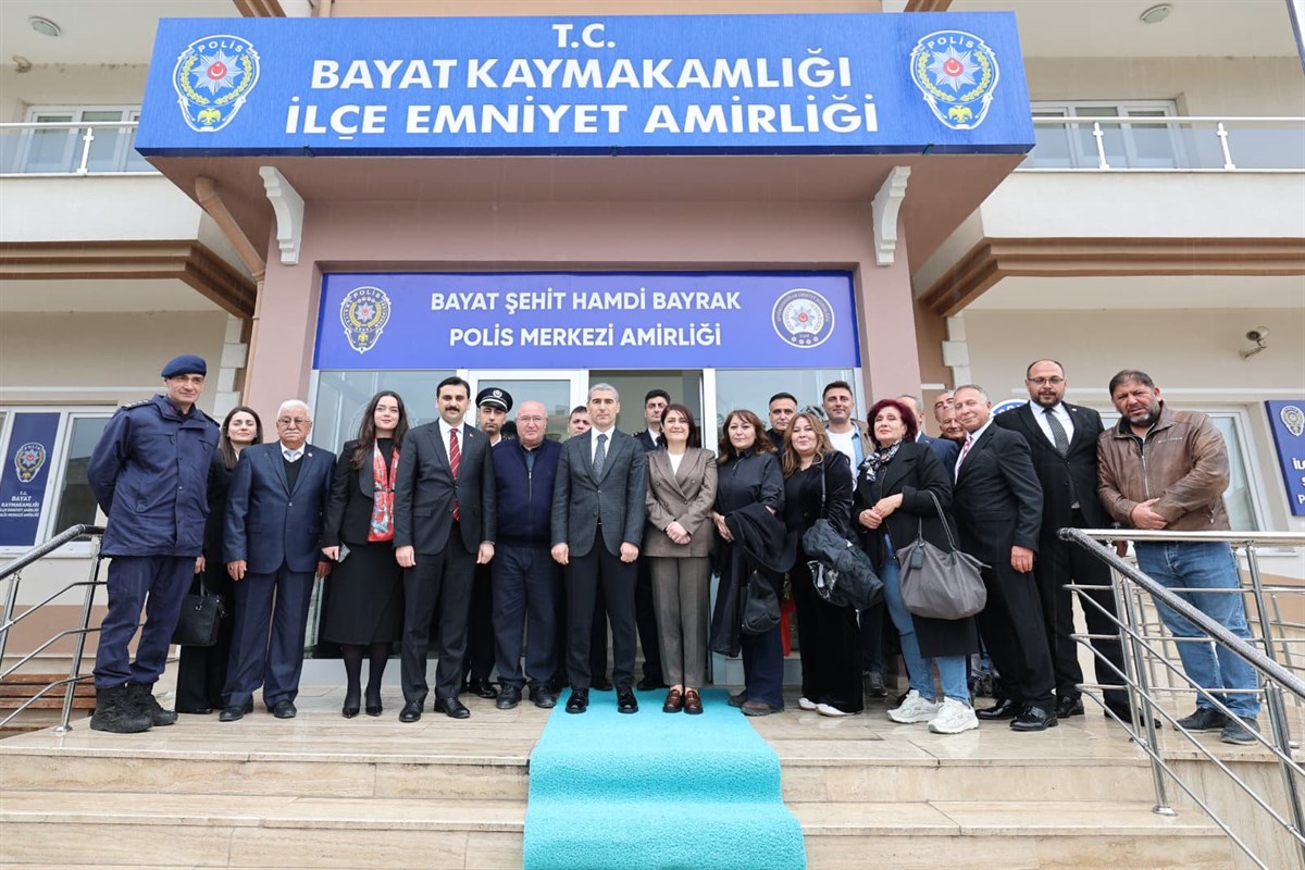 Vali Aktaş ilk olarak Bayat İlçe Emniyet Amirliğini ziyaret etti. İlçede huzur ve güven ortamının sağlanmasına yönelik yürütülen çalışmaları denetleyen Vali Aktaş, emniyet ekiplerimize teşekkür ederek Polis Haftası’nı kutladı.