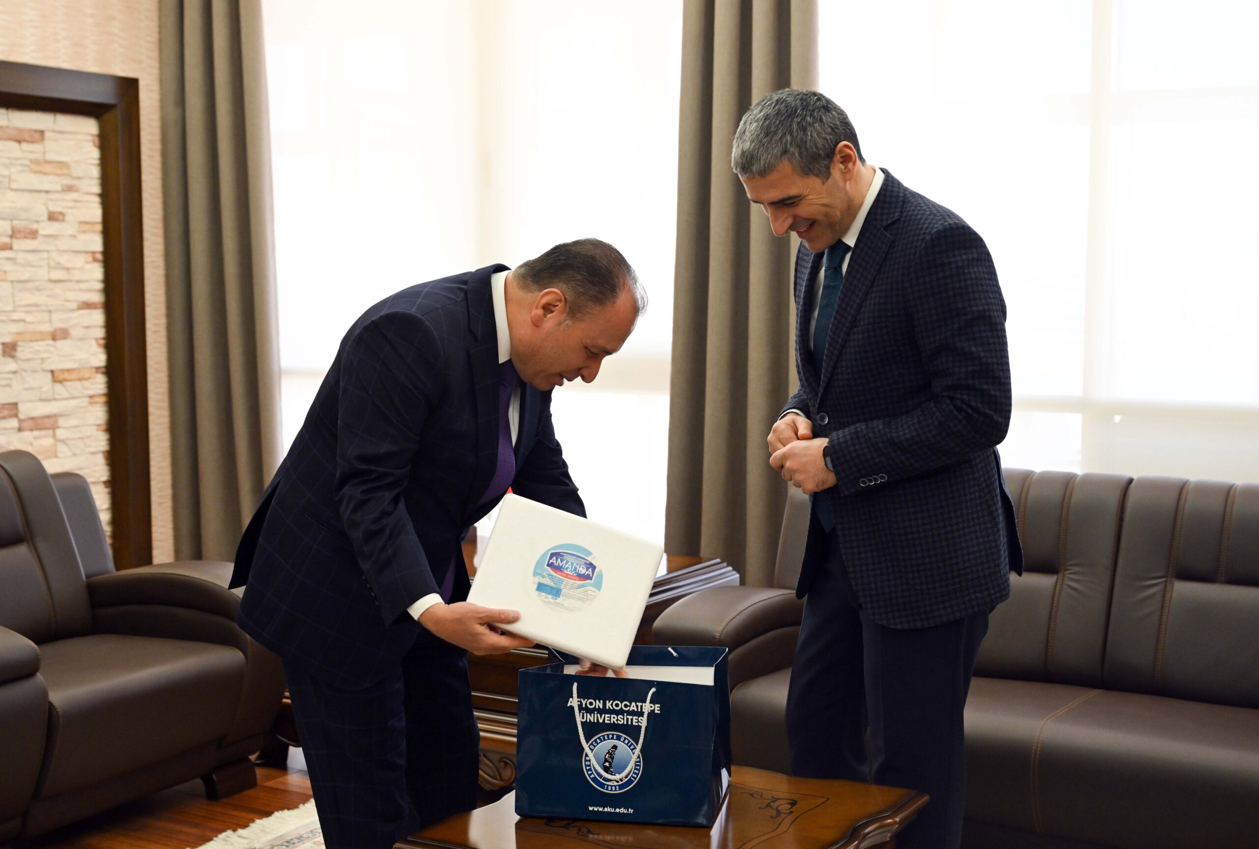Görüşme sonunda Rektör Prof. Dr. Mehmet Karakaş, Vali Dr. Naci Aktaş’a üniversitenin öz kaynaklarıyla üretilen ve akademik başarısını simgeleyen özel bir hediye paketi takdim etti. Pakette yer alan ürünler, AKÜ’nün sadece eğitimde değil, üretimde de aktif rol aldığını gözler önüne serdi.
