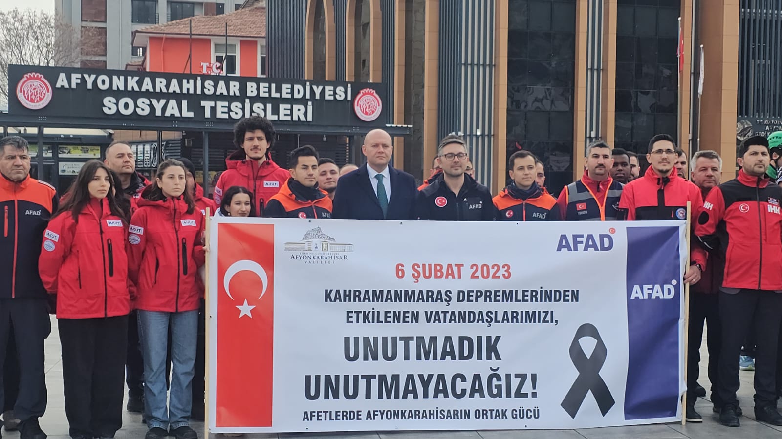 Program kapsamında kentin simgesi olan tarihi Afyon Kalesi’ne, depremde yitirilen canların anısına dev bir “Unutmayacağız” pankartı asıldı. Meydanda bir araya gelen arama kurtarma ekipleri ve vatandaşlar, depremin yaşandığı saatleri hatırlayarak bir dakikalık saygı duruşunda bulundu.