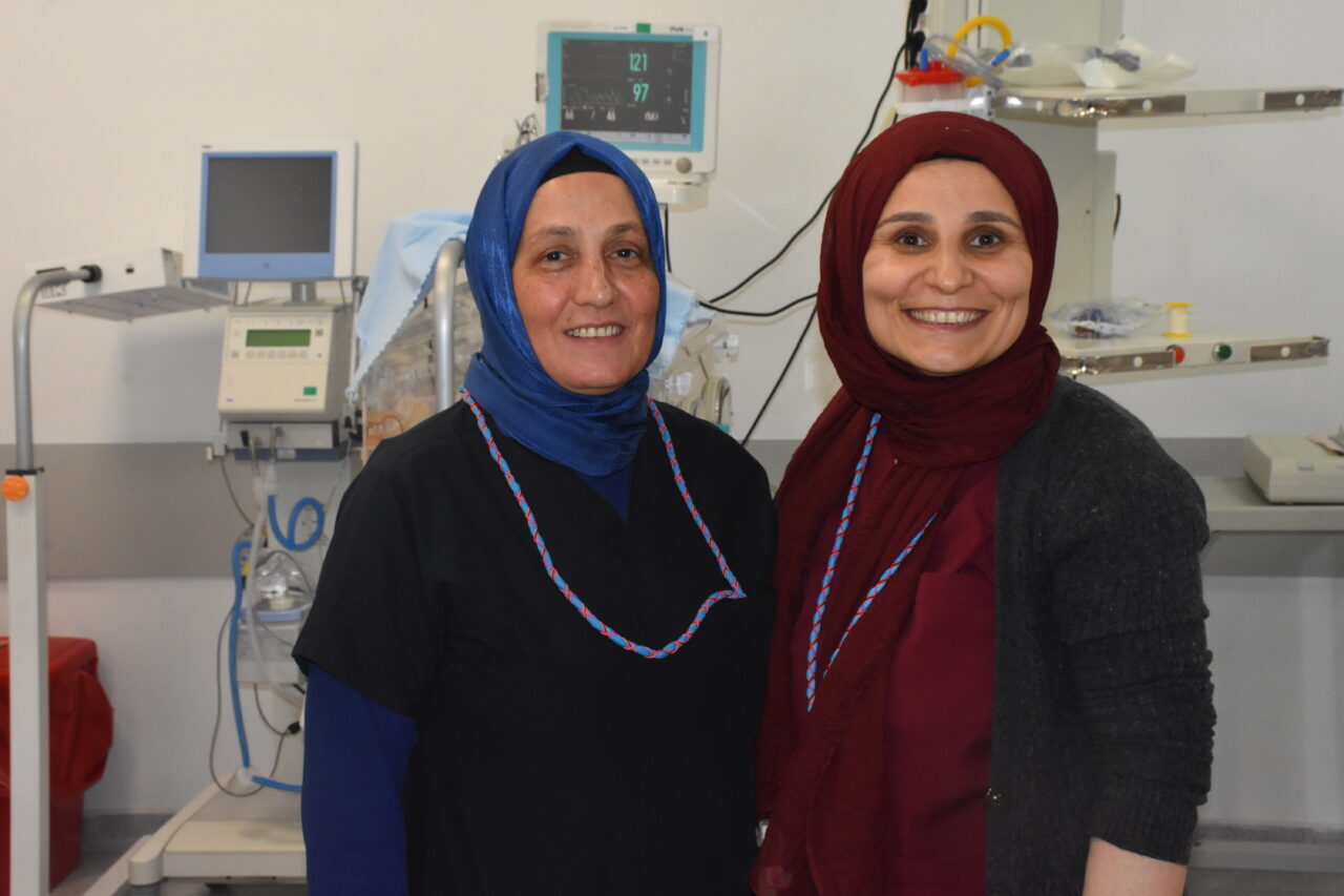 Afyonkarahisar’da prematüre ünitesinde bebek bakım hemşiresi olarak 34 yıldır çalışan Sibel Gündoğar, tıbbi bilgisinin yanı sıra sevgi ve şefkatle de minik hastaların sağlığı için çabalıyor. Gündoğar, (solda) ile Mediha Çakal (sağda) AA muhabirine açıklamada bulundu. ( Arif Yavuz – Anadolu Ajansı )