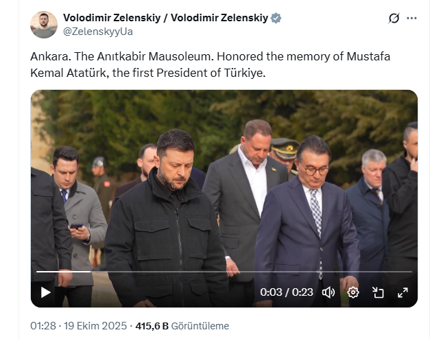 Zelenskiy, Aslanlı Yol’dan yürüyerek mozoleye çelenk bıraktı ve ardından Misak-ı Milli Kulesi’ne geçerek Anıtkabir Özel Defteri’ne düşüncelerini yazdı. Bu ziyaret, Türkiye-Ukrayna ilişkilerinde diplomatik bağların güçlenmesinin ve iki ülke arasındaki iş birliğinin simgesi olarak değerlendiriliyor.