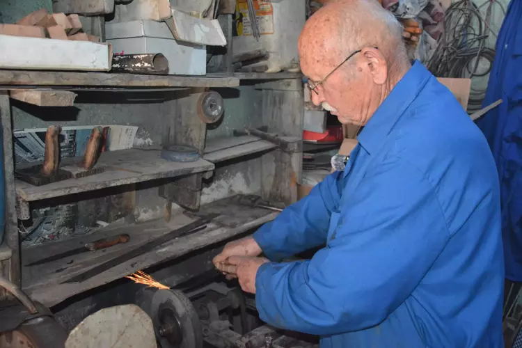 Demirci ilçesinde yaşayan bıçak ustası Orhan Karakaya, babasından devraldığı mesleğini yarım asrı aşkın süredir sürdürüyor. Hacıhasan Mahallesi Yağcılar Sokak’taki atölyesinde çalışan Karakaya, 64 yıllık mesleğini ilk günkü titizlikle devam ettiriyor. İlerleyen yaşına rağmen örs başında çalışmayı sürdüren Karakaya, ‘Makasçı Şükrü’ olarak bilinen babası Şükrü Karakaya’dan devraldığı mesleği gelecek nesillere aktarmak için üretim yaptığını ifade etti.
