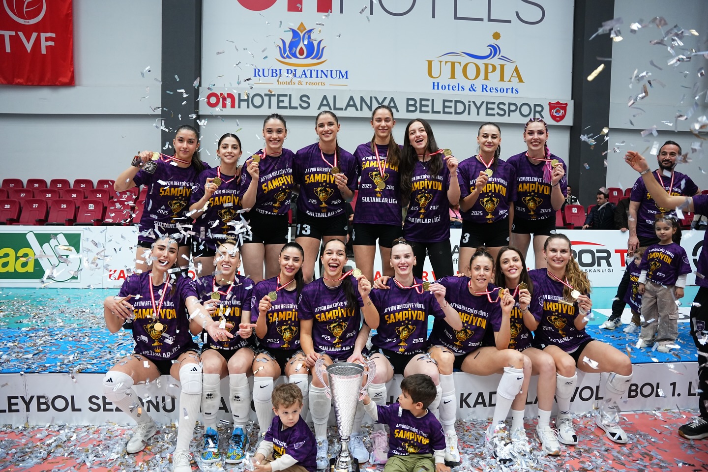Afyon Belediye Yüntaş Kadın Voleybol Takımı, Arabica Coffee House Kadınlar 1. Lig’de sergilediği üstün performansı şampiyonlukla taçlandırarak Vodafone Sultanlar Ligi’ne yükseldi. Alanya’da düzenlenen final etabının ardından gerçekleştirilen kupa töreninde Afyon temsilcisi, büyük bir coşku eşliğinde kupasını aldı. Sezon boyunca istikrarlı bir grafik çizen Yüntaş, final etabında zirveye çıkarak hem şampiyonluk elde etti hem de Türkiye’nin en üst düzey ligine adını yazdırdı. Kupa töreninde oyuncular, teknik ekip ve yöneticiler sevinci birlikte yaşarken, tribünleri dolduran Afyonkarahisarlı taraftarlar da bu tarihi ana tanıklık etti. Elde edilen başarı, kulüp tarihinin en önemli dönüm noktalarından biri olarak kayıtlara geçti. >>>Haber Merkezi