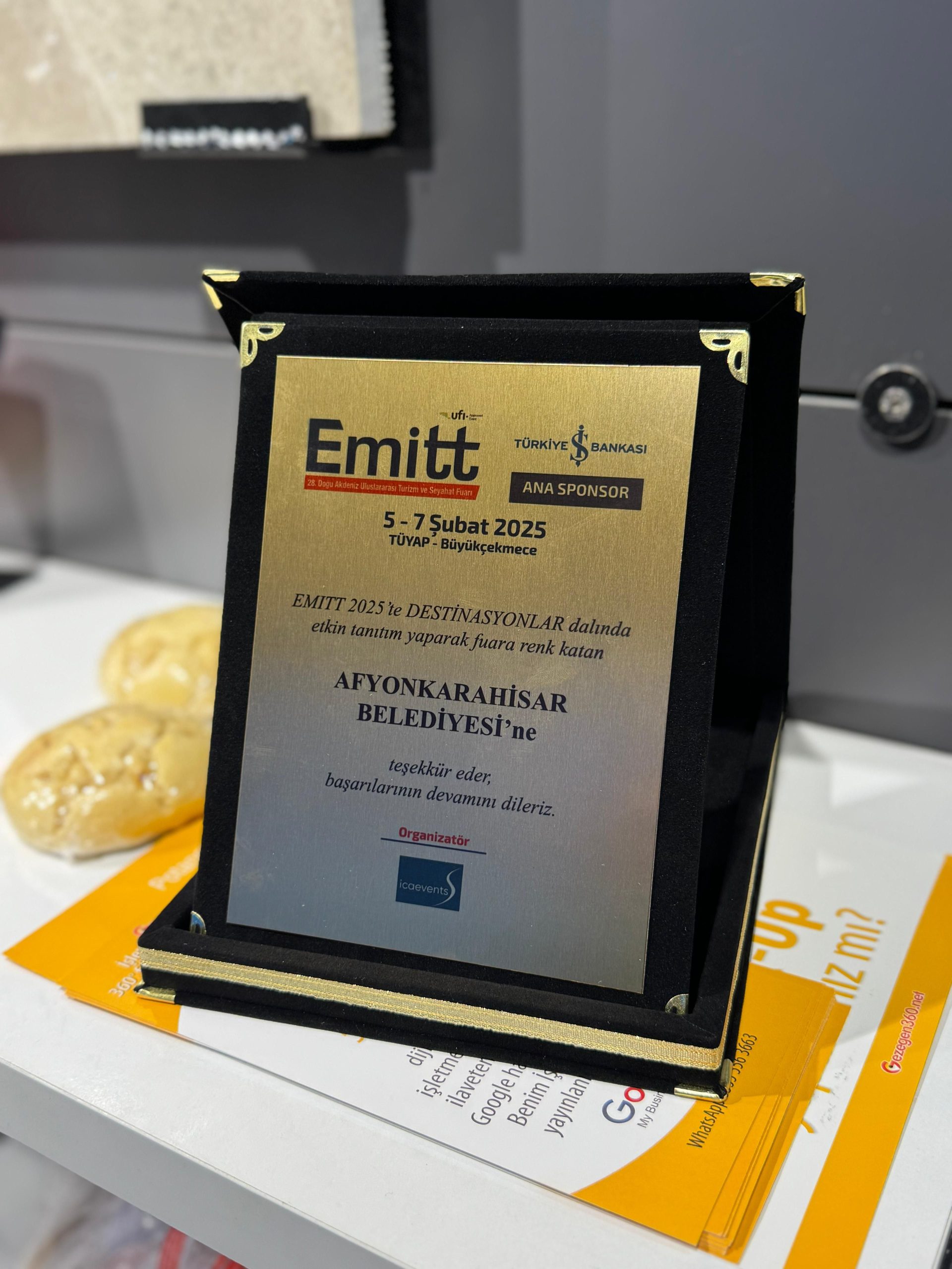 Doğu Akdeniz Uluslararası Turizm ve Seyahat Fuarı 2025, binlerce ziyaretçiyi ağırladı. Fuara katılan Afyonkarahisar Belediyesi, EMITT 2025 Fuarı’nda gösterdiği başarılı tanıtım çalışmalarıyla “Destinasyonlar” kategorisinde ödüle layık görüldü.