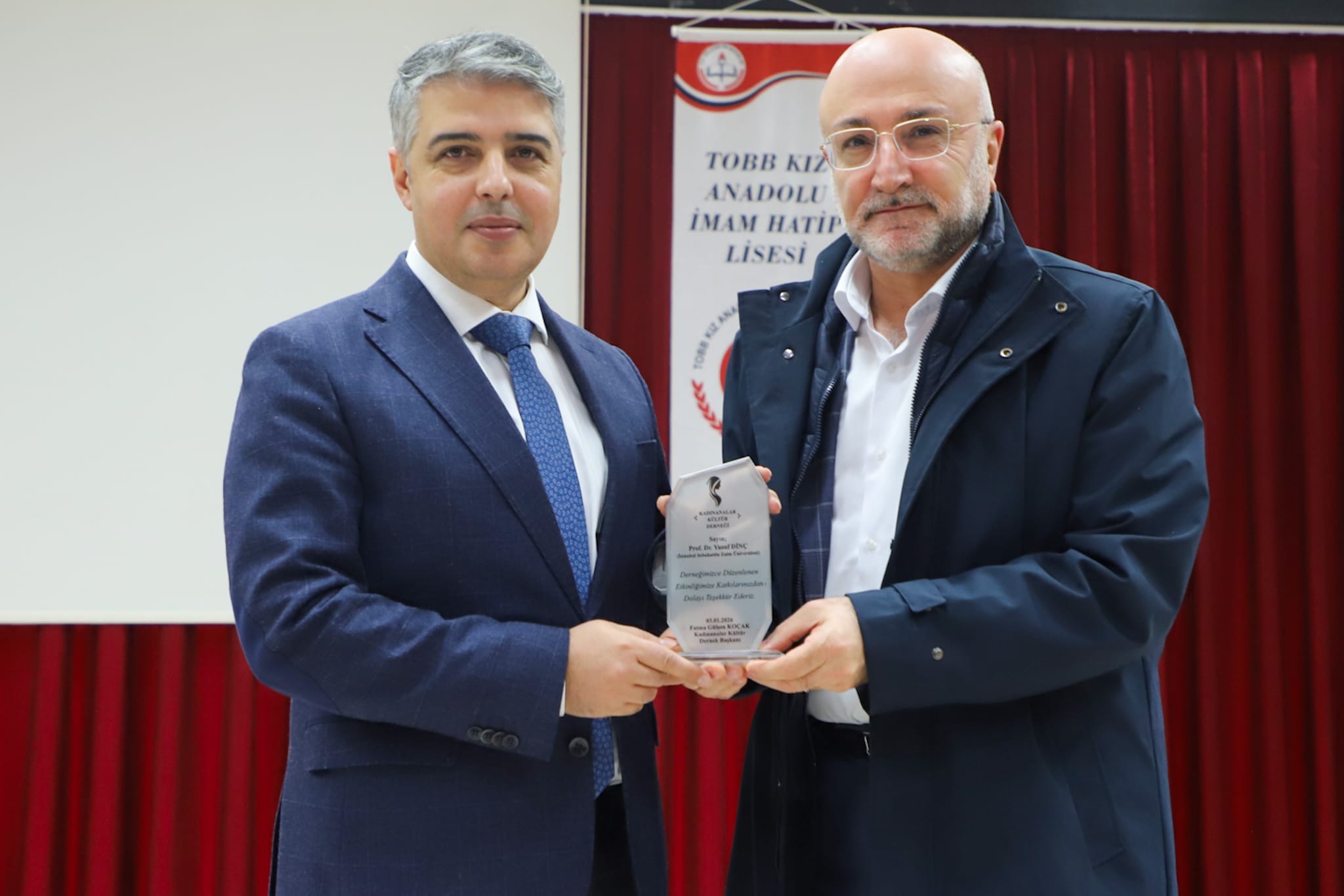 Programın ardından AK Parti Afyonkarahisar İl Başkanı Av. Turgay Şahin, konferansa sunduğu katkılardan dolayı Prof. Dr. Yusuf Dinç’e plaket takdim etti.