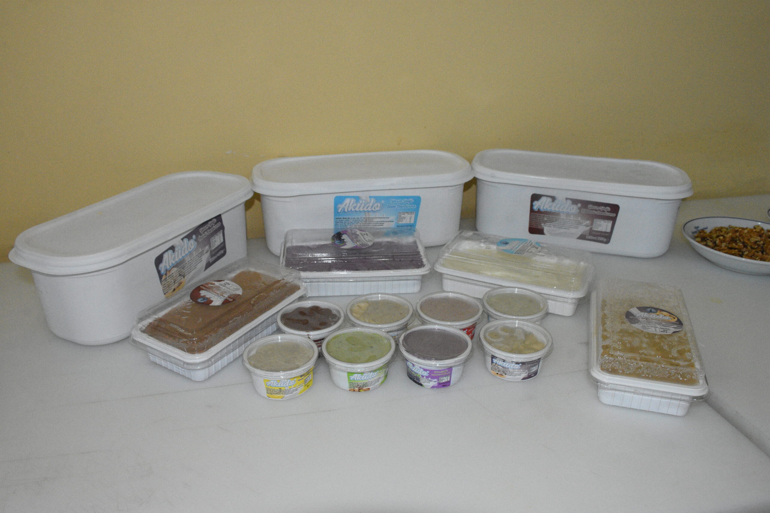 AKÜ Gıda Mühendisliği Bölümü Dr. Öğr. Üyesi Mehmet Kılınç’ın öncülüğünde, Gıda Kontrol Uygulama ve Araştırma Merkezi’nde bölüm öğrencilerinin endüstriyel üretimde pratik ve tecrübe kazanmaları için 5 yıl önce manda sütünden dondurma üretimine başlandı. Sade, kakaolu, karamelli, ballı bademli, incirli, muzlu, damla sakızlı, tahin pekmezli ve bal kabaklı dondurma çeşitleri, AKÜDO ismiyle kampüste satışa sunuldu. Kısa sürede beğenilen AKÜDO, 2022’de Türk Patent ve Marka Kurumu tarafından üniversite adına tescillendi, üretimi de ilk yıla göre 10 kat arttı. Haşhaşlı, Antep fıstıklı, çilekli, karadutlu, böğürtlenli, yaban mersinli, cevizli ve limonlu olmak üzere 17 çeşide ulaşan AKÜDO markalı manda sütlü dondurmalar, farklı gramajlarda Afyonkarahisar’da 4 farklı noktada satışa sunuluyor.