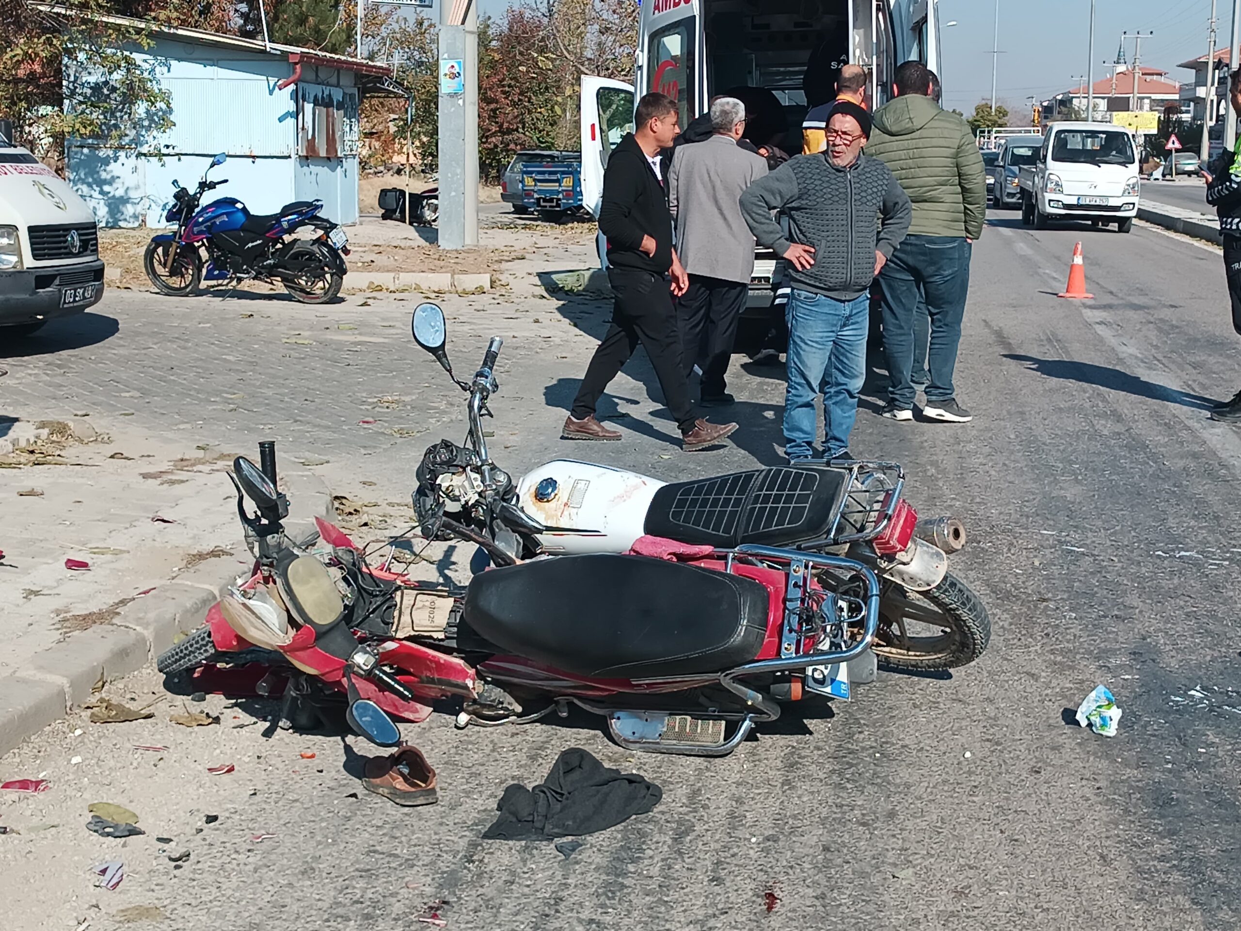 Afyonkarahisar’ın Şuhut ilçesi girişinde iki motosikletin çarpışması sonucu 2 sürücü ağır yaralandı. M.K.’nın kullandığı 03 plakalı motosiklet, plakası tespit edilemeyen diğer motosikletle çarpıştı. Çarpışma sonucu her iki motosiklet devrildi. Yaralı sürücülere ilk müdahale çevredekiler tarafından yapılırken, sağlık ekipleri olay yerine sevk edildi. Yaralılar hastanelere kaldırıldı ve durumlarının ciddiyetini koruduğu bildirildi. Savcılık soruşturma başlattı.